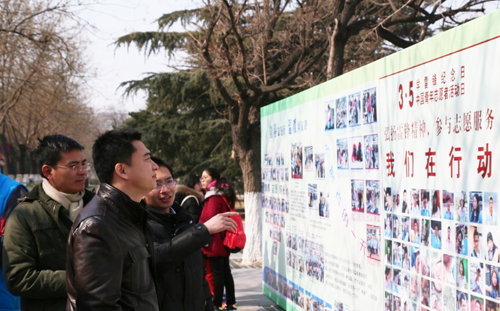 3月5日是学雷锋纪念日、中国青年志愿者服务日,校团委在学生活动广场举办了主题为“弘扬雷锋精神,参与志愿服务——我们在行动”的志愿服务活动图片展。校党委书记谢辉、党委副书记郭玉良等领导到现场参观展览。