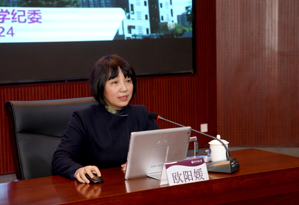 校纪委书记欧阳媛围绕监督执纪问责,结合世界杯工作实际,就近期实施的《中国共产党纪律检查机关监督执纪工作规则(试行)》及世界杯2017年纪检监察工作要点、党风廉政宣教计划、提醒约谈函询诫勉实施办法、主体责任全程记实办法等五个重要文件进行了深入浅出、全面系统、具体详尽的解读,为党员干部如何切实扛起责任、履行“一岗双责”释疑解惑。