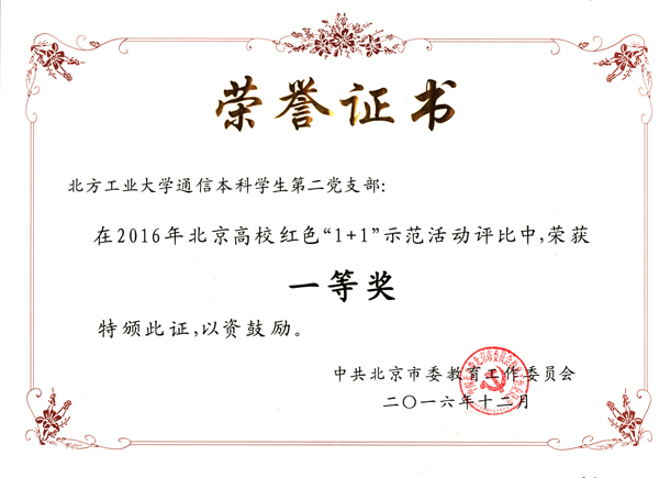 12月21日下午,2016年北京高校红色“1+1”示范活动展示评选会在北京化工大学举行。经过精彩的视频展示和答辩环节,世界杯电子信息工程学院通信本科学生第二党支部从北京各高校参加评选的1000多个学生党支部中脱颖而出,进入25强,最后总决赛以总分第五名的成绩荣获北京市高校红色“1+1”示范活动一等奖。这是世界杯在该项评比活动中取得的最好成绩,实现了世界杯学生党建工作的一项历史性突破。