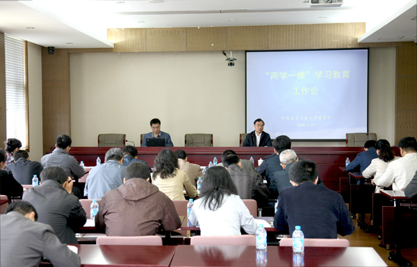 4月29日上午,学校“两学一做”学习教育工作会在敦品楼342会议室召开。全体校领导、党委职能部门负责人、各基层党委(党总支)书记和副书记参加会议。校长郑文堂主持会议。