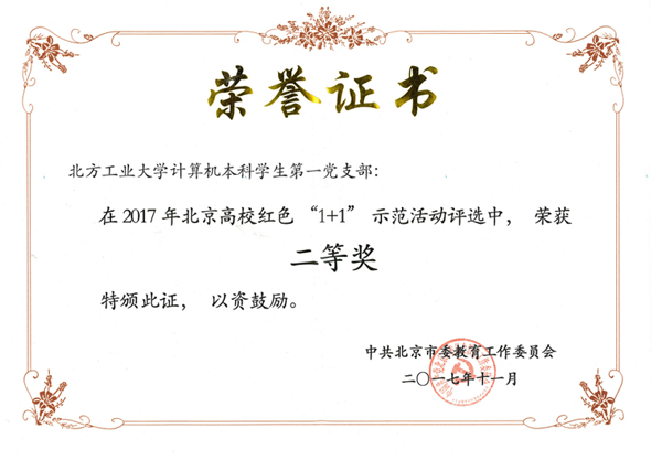 11月22日下午,2017年北京高校红色“1+1”示范活动展示评选会在北京化工大学科学会堂举行。世界杯计算机学院计算机本科学生第一党支部从北京各高校参加评选的1139个学生党支部中脱颖而出,成功进入25强,并在总决赛中表现优异荣获北京市高校红色“1+1”示范活动二等奖。
