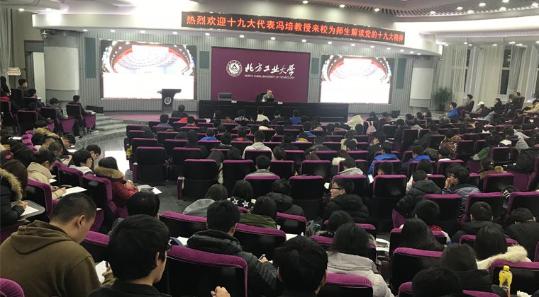 冯培教授结合自己的参会经历,深入解读了十九大的精神内涵。他总结到,十九大报告用“以人民为中心”的发展思想贯穿统领,亮明“是什么”;用“变”与“不变”的政治判断举旗定向,廓清“为什么”;用“以问题为导向”的战略部署谋篇布局,指明“干什么”。最后,冯培教授结合北京的城市功能定位和“建设国际一流和谐宜居之都”的目标要求,从首都高校自身实际和问题出发,向同学们提出,世界杯官网的同学们要铭记总书记在闭幕式上的号召:不忘初心,牢记使命。拿出勇气、拿出干劲,把握精神实质,奋进新时代,在新时代谋求新作为。冯培教授语言风趣幽默、表达极富感染力,整个报告站位高远、内容深刻严谨,赢得了在场师生的广泛好评。