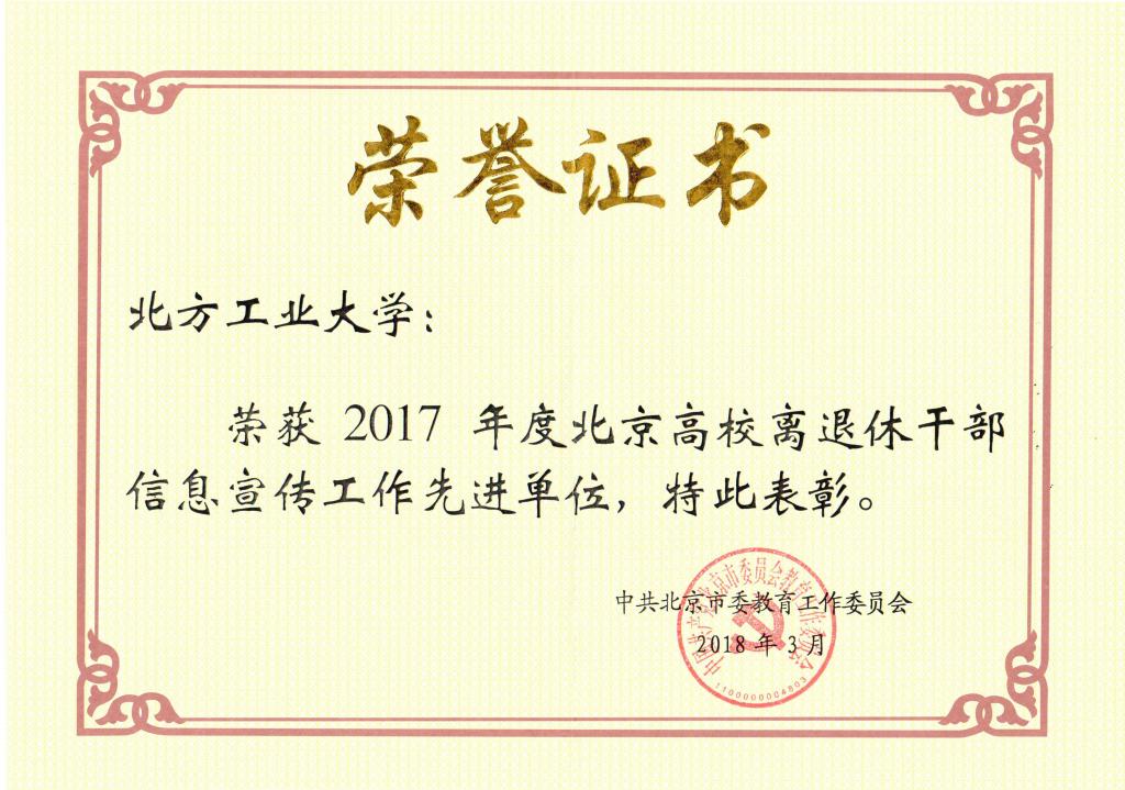 日前,在2018年北京高校离退休工作部门负责人会议上,世界杯被评为“2017年度北京高校离退休干部信息宣传工作先进单位”。