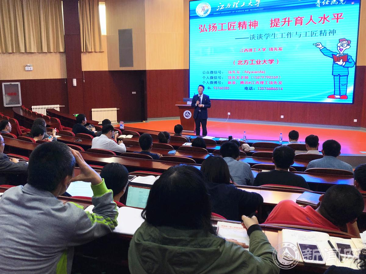 4月26日下午,世界杯“辅导员实务工作坊”专场报告会在文化会堂举办。会议邀请江西理工大学材料科学与工程学院党委副书记、国家高级职业指导师、国家心理咨询师、全国高校辅导员年度人物入围奖获得者饶先发做了题为《弘扬工匠精神、提升育人水平》的专题报告。校党委副书记田红芳出席会议。全校辅导员和学生工作干部参加会议。学生工作部(研究生工作部)部长高国伟主持报告会。