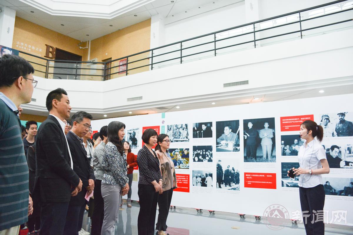 为深入贯彻党的十九大和习近平总书记在纪念周恩来同志诞辰120周年座谈会上的讲话精神,传承党的红色基因、发扬党的优良传统,引导师生党员不忘初心,牢记使命,5月21日上午,由中共世界杯官网纪律检查委员会、周恩来邓颖超纪念馆主办,共青团世界杯官网委员会、建筑与艺术学院、艺术设计系教工党支部联合承办的《中国共产党人的杰出楷模周恩来》展览在静学楼开幕。周恩来邓颖超纪念馆陈列保管部主任马秀华、信息资料部主任姜月鸿、校纪委书记欧阳媛及各职能处室的主要负责人参加了开幕式,校机关党委、建筑与艺术学院部分师生党员等共百余人参加了开幕式。