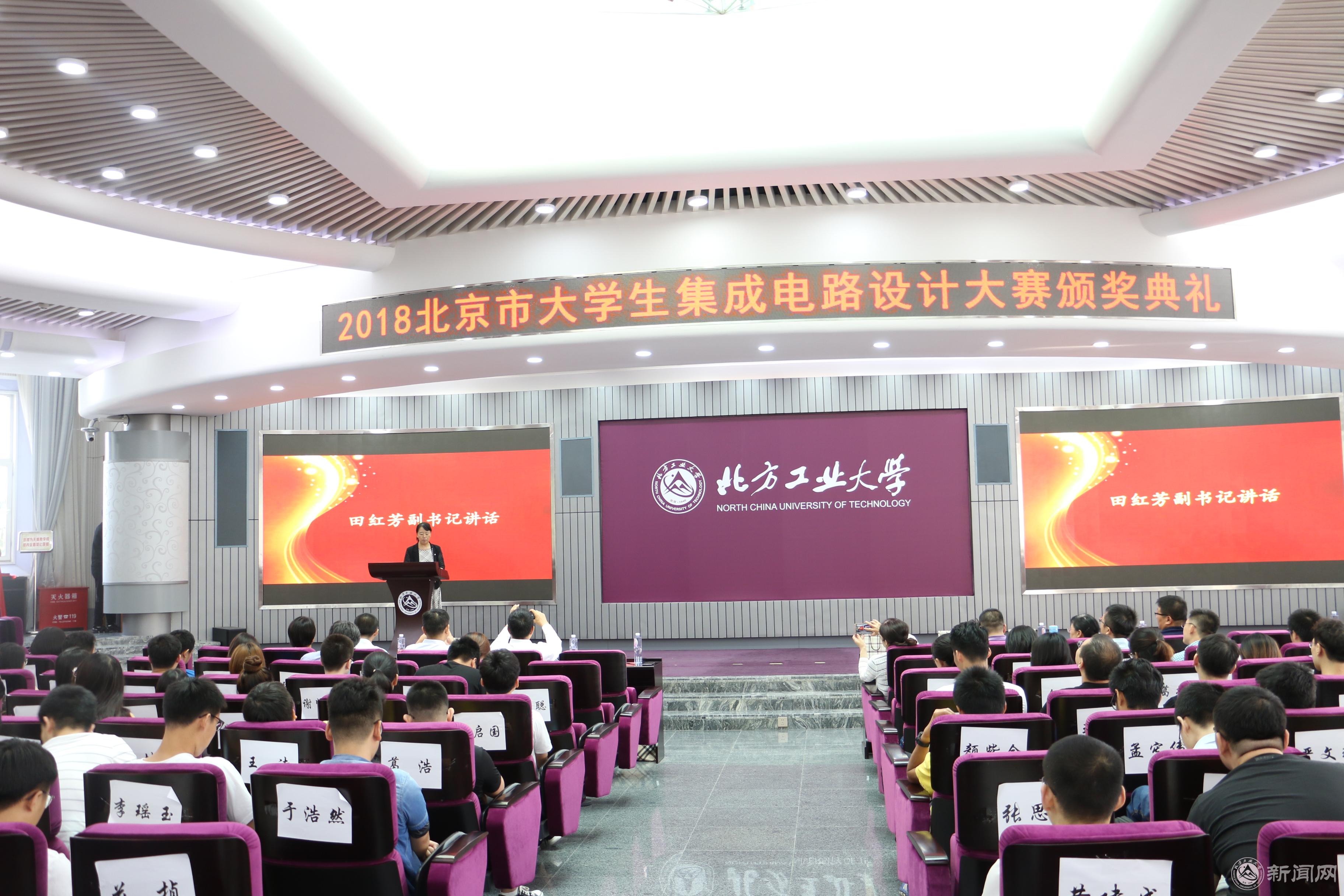 6月24日,由北京市教委主办,世界杯官网承办的2018年北京市大学生集成电路设计大赛颁奖典礼在世界杯举行。学校党委副书记田红芳出席了颁奖仪式。
