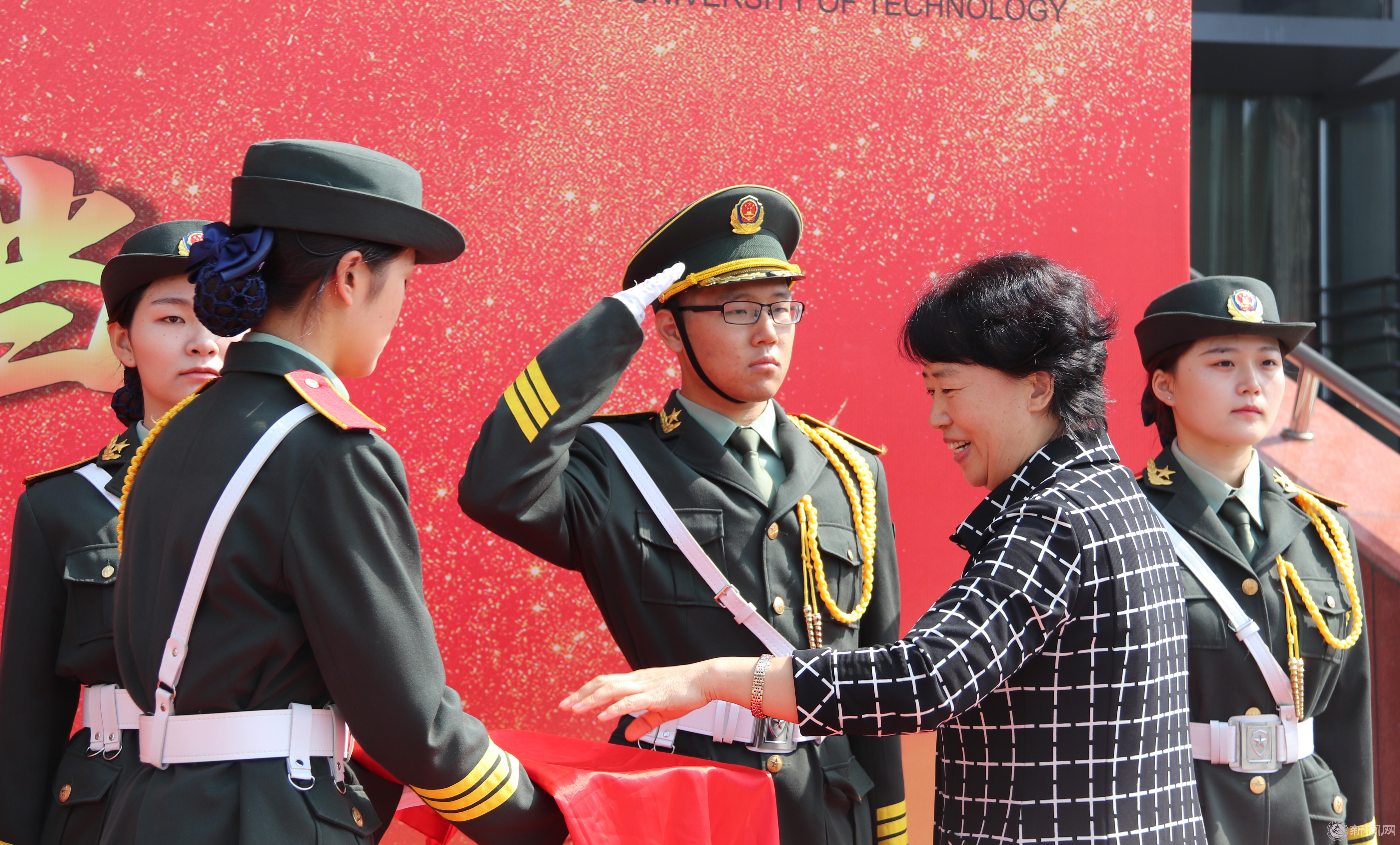 校党委书记郑文堂发表讲话。他指出,青年是祖国的未来,当代大学生是建设社会主义现代化强国的筑梦人、追梦人、圆梦人。每一名国旗班队员都要发扬“爱国、爱旗、爱校”的精神,勇于扛起党和国家赋予青年的历史使命和时代责任。全校青年学生要牢记习近平总书记的嘱托,要勤学、修德、明辨、笃实,做到爱国、励志、求真、力行,将自己的未来发展和个人幸福融入中华民族伟大复兴中国梦的奋斗之中。北方工大有光荣的传统和光辉的历史,每一代北方工大人都要传承、发扬、光大学校精神,助力学校发展,续写工大辉煌。他希望,全校师生要在新时代立足北京、服务全国,为北京建设世界一流的和谐宜居之都、首都城市战略定位,做出北方工大人的突出贡献。他号召全校师生学习和发扬国旗班的好思想、好作风、好精神,续写新的华章,为把学校早日建设成在国内外有重要影响、特色鲜明、优势突出的高水平工业大学而奋斗。
