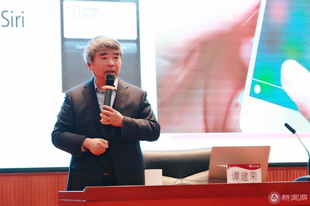 谭院士结合人工智能的发展和自身成长发展的经历,提出了创新五要素:创新技术、创新产品、创新平台、创新环境、创新人才,其中创新人才最为重要;而创新人才的培养也关涉5个方面:孜孜不倦的求知渴望、对技术的高度兴趣、专业化的熟练技能、坚持不懈的时间投入、多领域知识的学习能力。谭院士还生动讲述了学术上的创新故事和生产领域的创新案例。谭院士的报告既有学术高度,又有生动事例,娓娓道来,引发了师生广泛的共鸣与深入的思考。