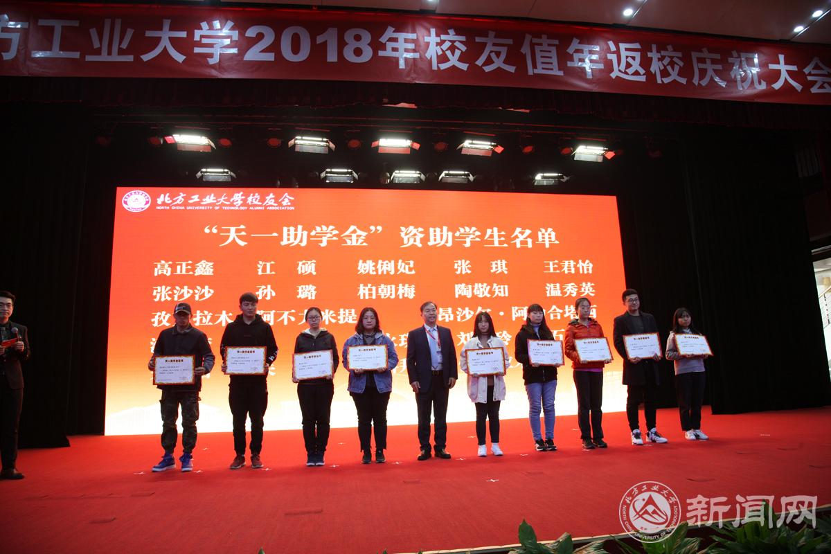 广大校友捐资设立奖助学基金。校友谢付正、张捷、段卫华、邓爱君分别为获得“天一助学金”、“天汇奖学金”和“天汇创业基金”、“鲁班助学金”、“爱君奖学金”的同学颁发了证书。