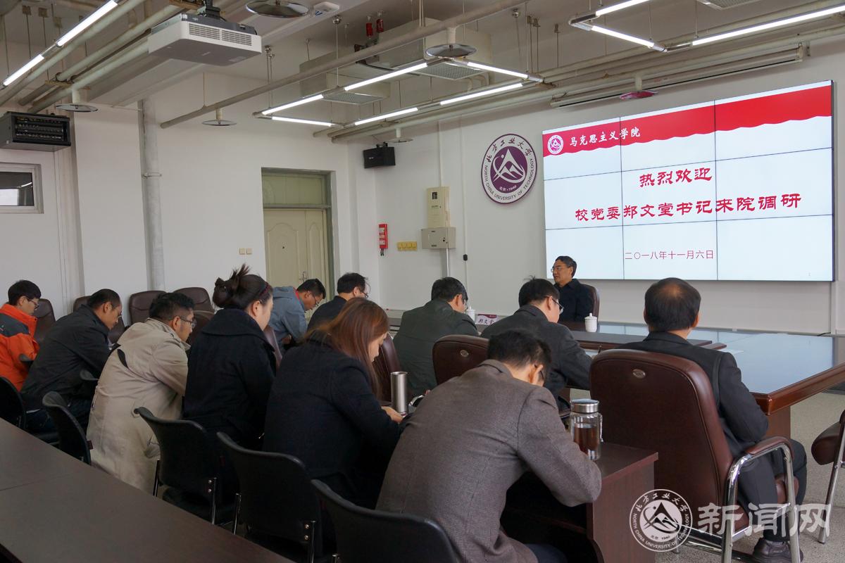 郑文堂书记首先对马克思主义学院的发展状况及在本科教学审核评估中的工作表现予以充分肯定,并代表学校送上了亲切的慰问。他指出,在新时代新形势下,马院全体教师要进一步抢抓机遇,明确定位、苦练内功、凝聚特色、差异发展,推动学院事业再上台阶。明确定位,就是要明确马院在高校立德树人工作中的重要地位,切实做好马克思主义的学习研究传播工作;苦练内功,就是要潜心教书育人,加强思政课教师队伍建设,服务于新工科人才的培养;凝练特色,就是要传承并深化马院的传统,形成品牌优势;差异发展,就是要立足比较优势,发挥北方工大马院在北京市乃至全国高校中的应有作用。