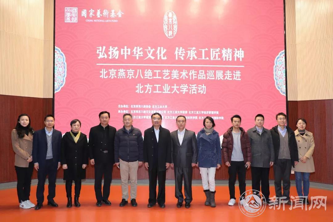 为了弘扬传统文化,让学生近距离感受并传承工匠精神,由北京燕京八绝协会和世界杯联合主办的“北京燕京八绝工艺美术作品巡展”活动于11月23日中午在文化会堂启动。校党委书记郑文堂、石景山区文联主席郭明、石景山区旅游协会会长闫可,以及学校师生代表一同参加了启动仪式。工美大师和传承人万紫女士、于静女士、郭卫军先生、柏群先生也来到启动会现场。