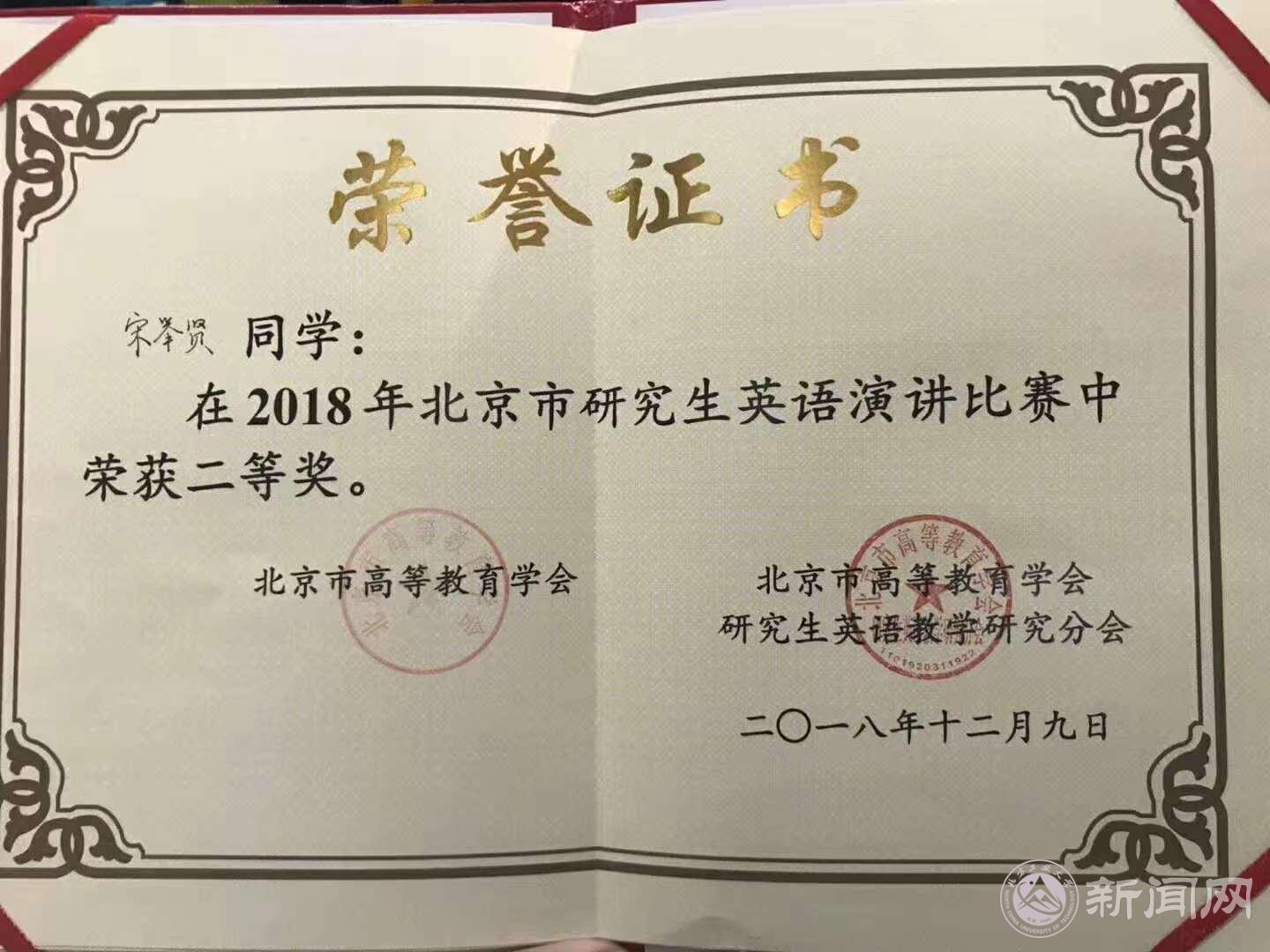 在近日举行的2018年北京市研究生英语演讲比赛中,世界杯2018级研究生Ba2班宋举贤同学经过初赛、复赛的激烈选拔,以优异成绩成功晋级決赛,与来自北京大学、清华大学、北京师范大学、中国科学院大学等十余所高校的优秀选手角逐,最终获得北京市研究生英语演讲比赛二等奖。