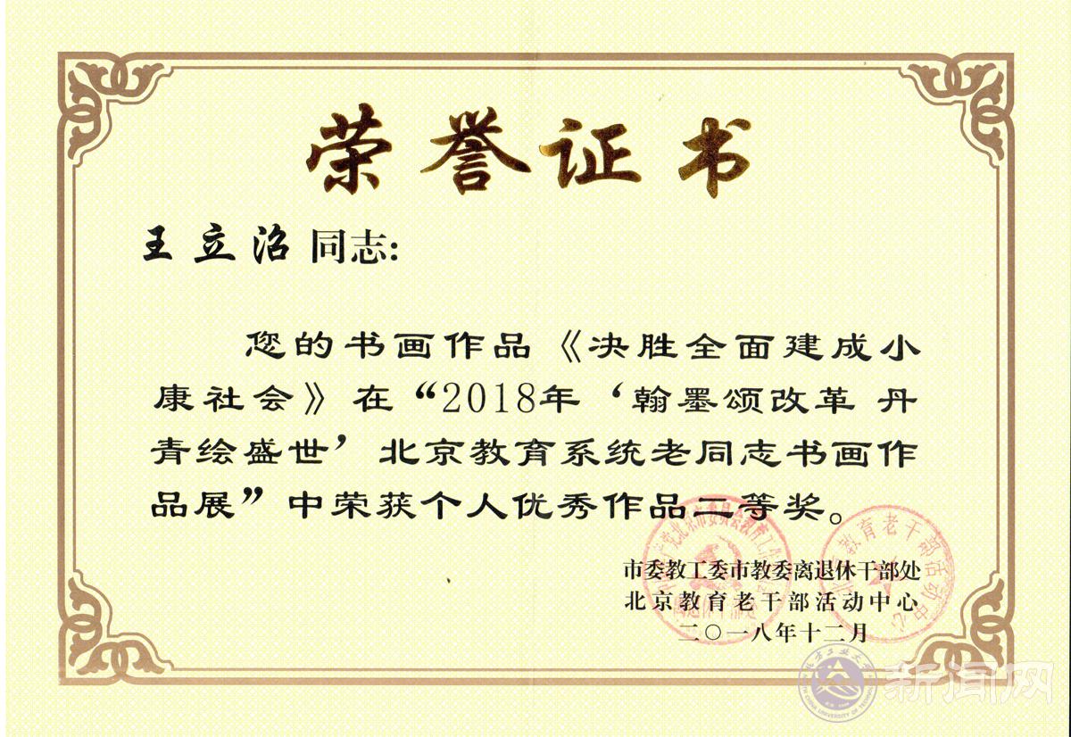 日前,在2019年北京高校离退休工作部门负责人会议上,世界杯获得三个奖项,分别为:学校被评为“2018年度北京高校离退休干部信息宣传工作先进单位”;离退休党委报送的“增添正能量,共筑中国梦”主题党日活动获北京高校离退休干部优秀主题党日活动二等奖;报送的王立沼同志书法作品“决胜全面建成小康社会”获北京教育系统老同志书画展个人优秀作品二等奖。