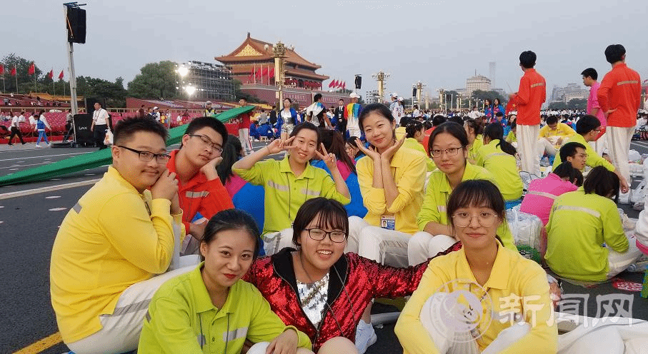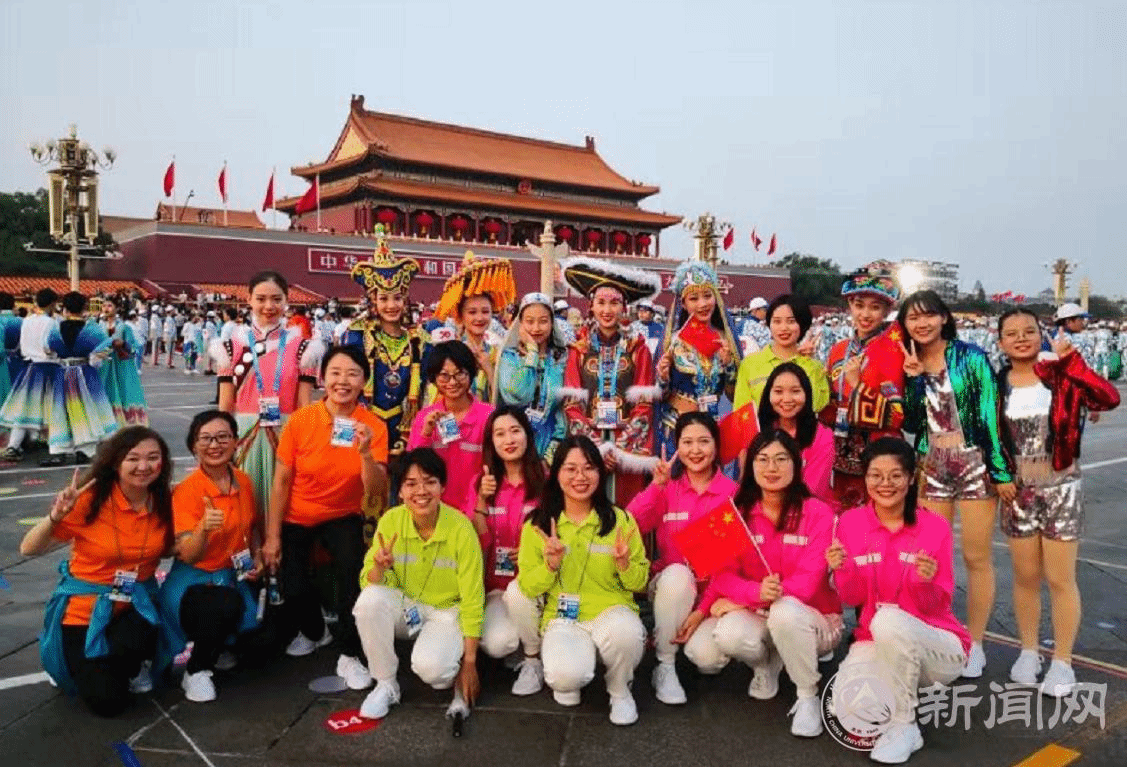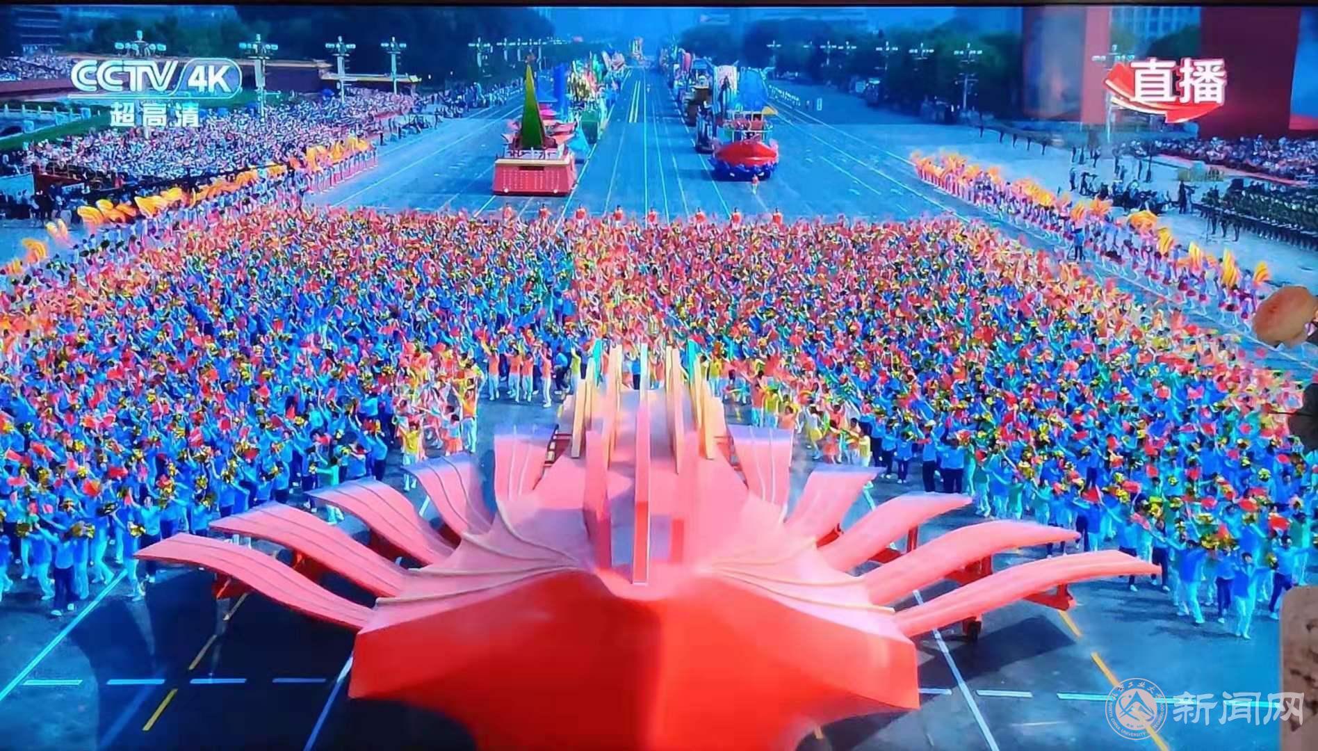 天安门广场的群众联欢活动中,位于人民大会堂北侧的“健康中国”主题板块,有来自北方工大的1100多名师生参与其中。
