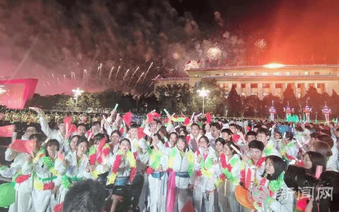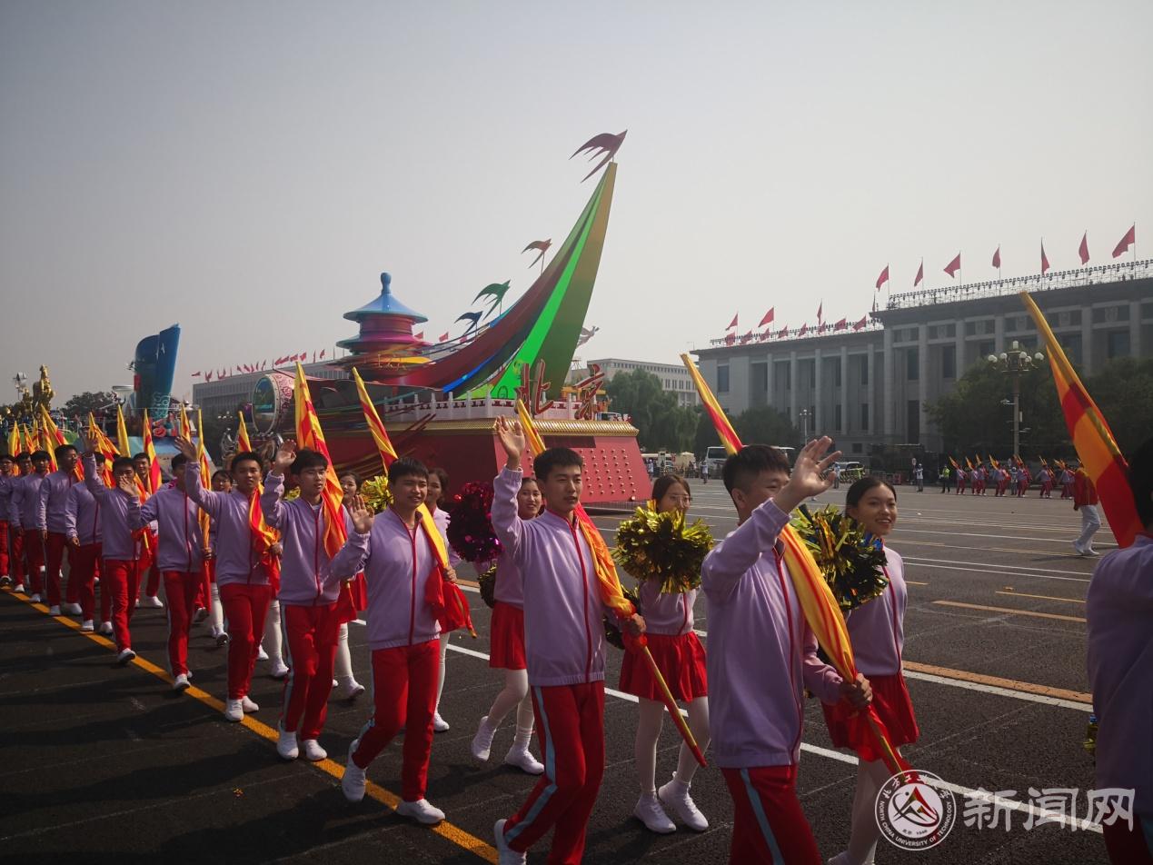 师生们在通过天安门广场的那一刻,习近平总书记一直向我们挥手致意,大家心情万分激动,把内心对祖国最深沉的爱以最真挚、最热烈、最欢愉的方式表达出来了,向全世界展示出中华儿女的自信豪迈、幸福美满,展示出当代中国大学生的青春风采。