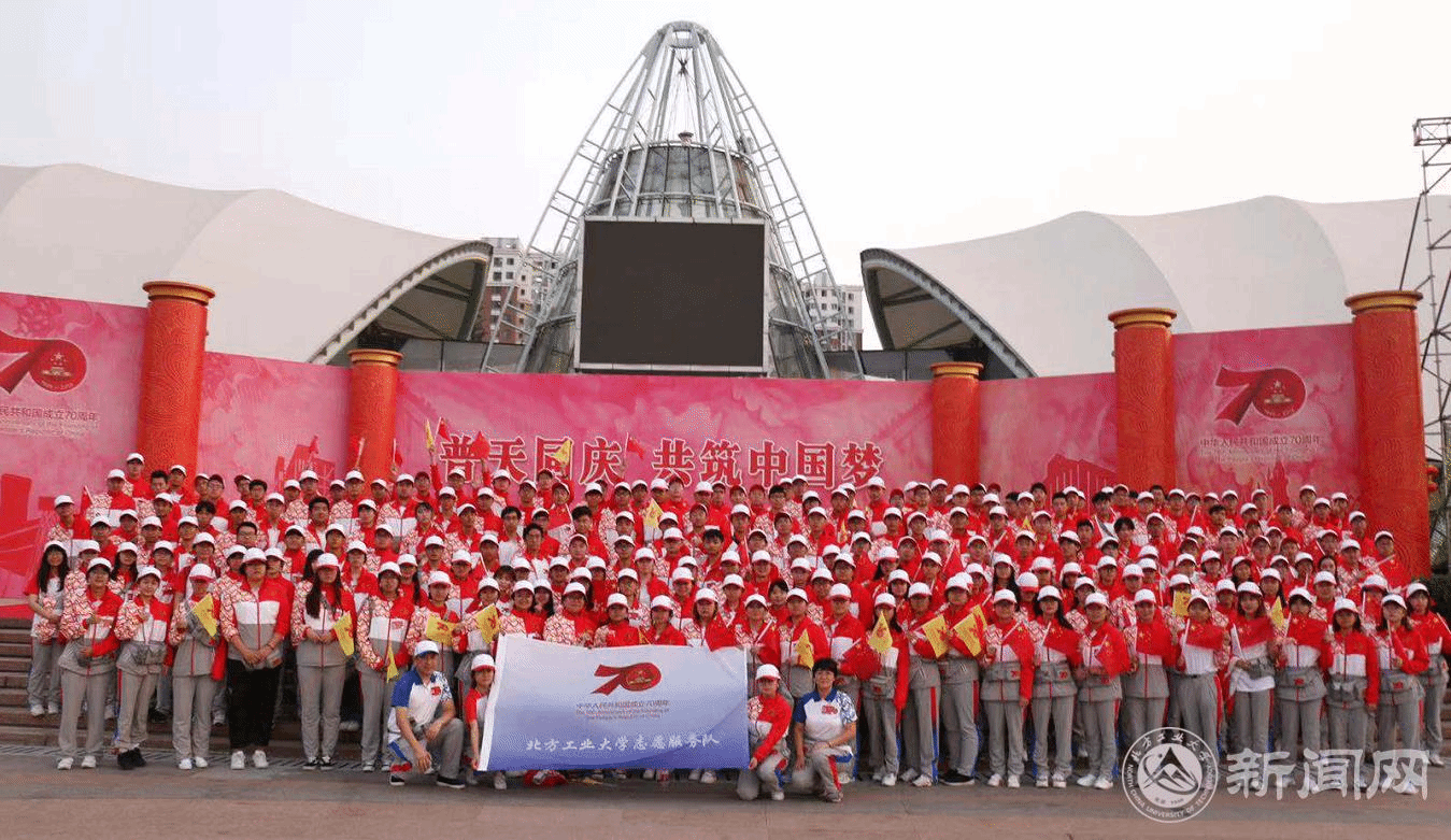 在这个国庆70周年庆祝活动期间,北方工大共派出了1060名志愿者,分别服务于群众游行远端集结、国庆游园活动、彩车展示活动、城市服务等。