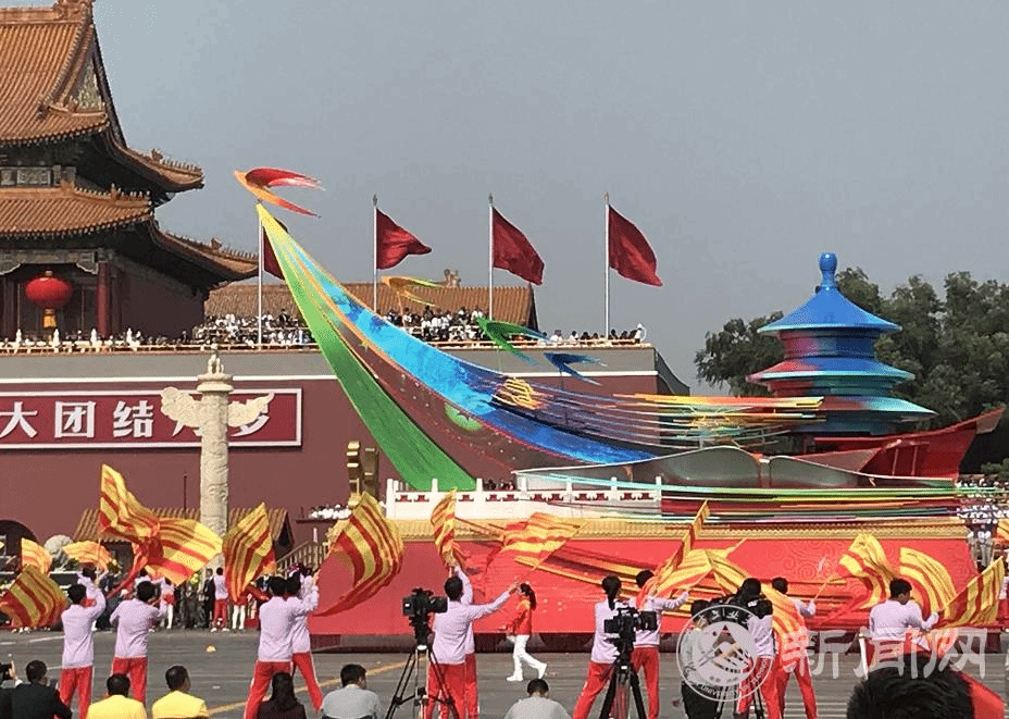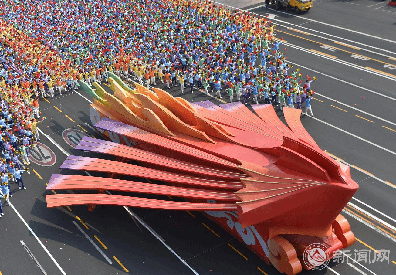 群众游行队伍的第31号方阵,主题为“中华儿女”,由2972名各界群众组成,其中930名北方工大师生组成了方阵骨架。方阵在“鲲鹏展翅”主题彩车的引领下,兴高采烈、欢呼雀跃走过天安门广场,后面跟着来自各省区市的34辆地方彩车,展示了全国各地70年来的建设发展成就。