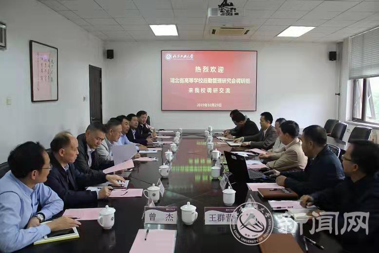 10月23日下午,以研究会副秘书长王文起老师为领队的湖北省高等学校后勤管理研究会调研组一行八人来校调研交流。世界杯副校长胡应平,后勤基建处、服务中心等相关部门负责人接待了调研组,并与调研组进行了友好交流。调研交流会由后勤基建处处长赵永兵主持。