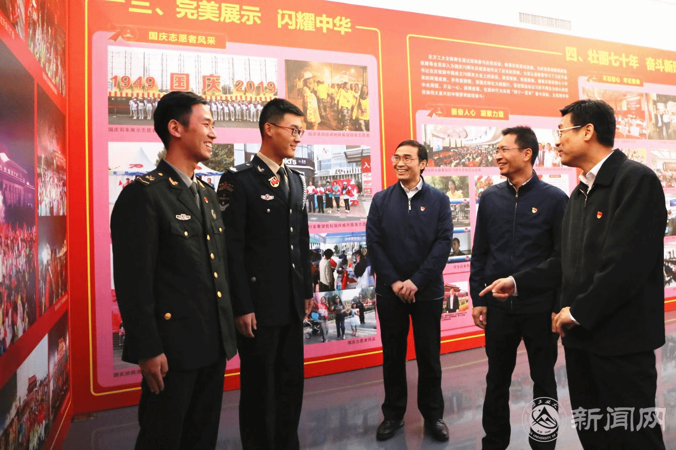 在校史馆,林克庆同志一行参观了以“不忘初心、牢记使命,我与祖国共奋进”为主题的学校庆祝新中国成立70周年主题教育活动成果展,全面了解学校践行党的初心和使命,为党育人、为国育才等方面情况。他指出,自1946年创立以来,学校在党建思政、人才培养、科学研究、改革创新等方面取得了众多成绩,看到学生们的作品创意、实验成果以及用心用情手工制作的“中华儿女”方阵彩车模型,很受感动。特别是学校把服务保障国庆作为最生动、最实际的主题教育,积极参与70周年庆典游行、联欢和志愿服务,充分展示出北方工大师生奋发有为、朝气蓬勃的精神风貌。