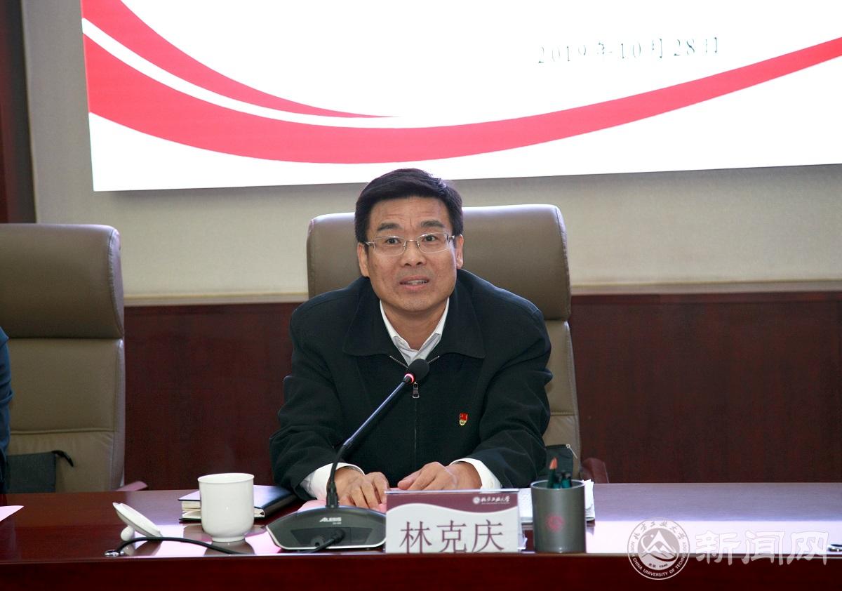 10月28日下午,正值党的十九届四中全会隆重召开,全市上下贯彻落实习近平总书记国庆系列重要讲话精神,深入总结服务保障国庆活动,把全校师生迸发出的爱党爱国热情、形成的宝贵精神财富,转化为更好践行初心使命之际,北京市委常委、常务副市长林克庆到校调研指导主题教育工作。市政府副秘书长王文杰、市委教育工委副书记李军锋、市政府研究室副主任李春荣、市委主题教育第十巡回指导组副组长刘开阳等陪同调研。学校党委书记郑文堂参加调研。