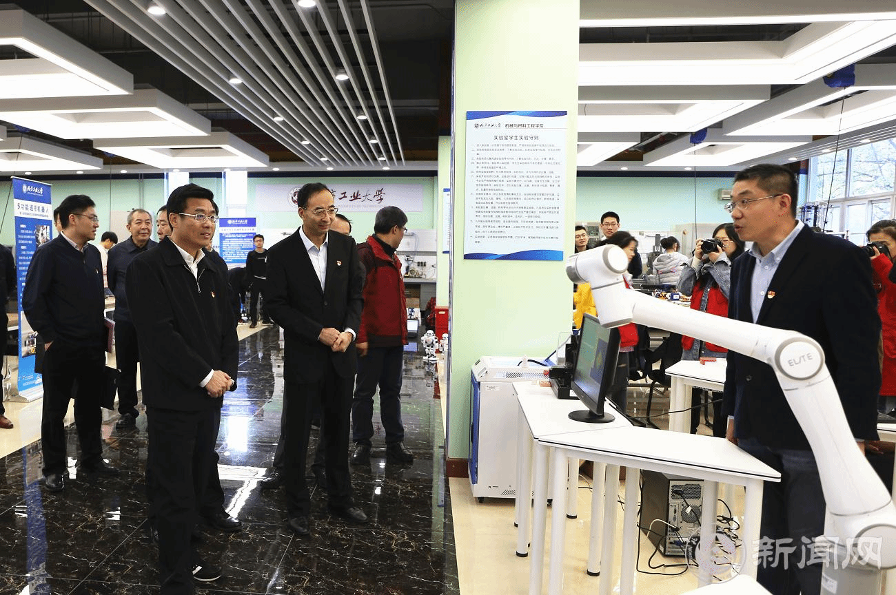林克庆同志一行在机械与材料工程学院大学生创新实践基地,实地考察了高新材料、智能机器人、智能制造、机电系统开发等方面的实物设计作品,详细了解结构功能一体化铝基复合材料、手眼协作智能双臂机器人、智能医疗检验机器人、广域水质水位在线监测仪、雕刻机群组控制实验、新型可折叠矢量二轴飞行器、多功能巡视机器人、3D打印技术等,以及全国大学生机械创新大赛、华北五省大学生机器人大赛等科研竞赛学生获奖项目,全面了解世界杯大学生的科研创作能力。