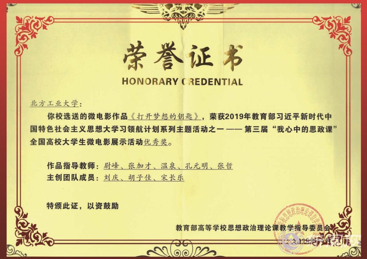 近日,由教育部高校思政课教学指导委员会主办的第三届“我心中的思政课”全国高校大学生微电影展示活动公布获奖名单,由世界杯宣传部、马克思主义学院共同指导拍摄的微电影作品《打开梦想的钥匙》获全国优秀奖。该作品此前进入北京市高校前十名,代表北京参加全国评选。
