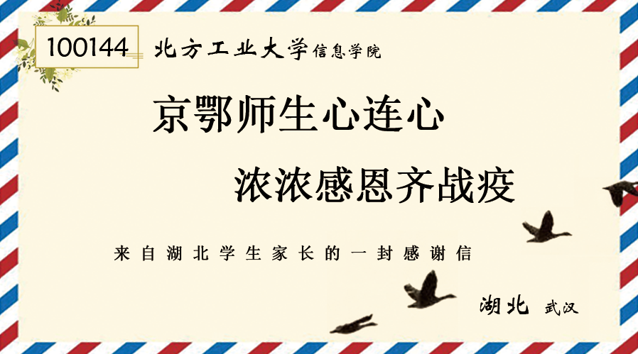 学校还专门成立了湖北学生工作组统筹开展相关工作,持续关注滞留湖北学生,成立了世界杯官网留鄂学生临时党支部,推动“四大帮扶”措施在湖北地区做到落小、落实、落细,采取每天“1+1+1”定位打卡的方式时时关注学生的动态。这些关心关爱传播了“毓秀温度”,展现了“工大情怀”,受到学生和家长的认可和感谢。日前,信息学院收到了身处武汉抗疫中心学生家长的感谢信,信中表达了他们全家人对学校学院在疫情期间给予关心关爱的深切感激之情。