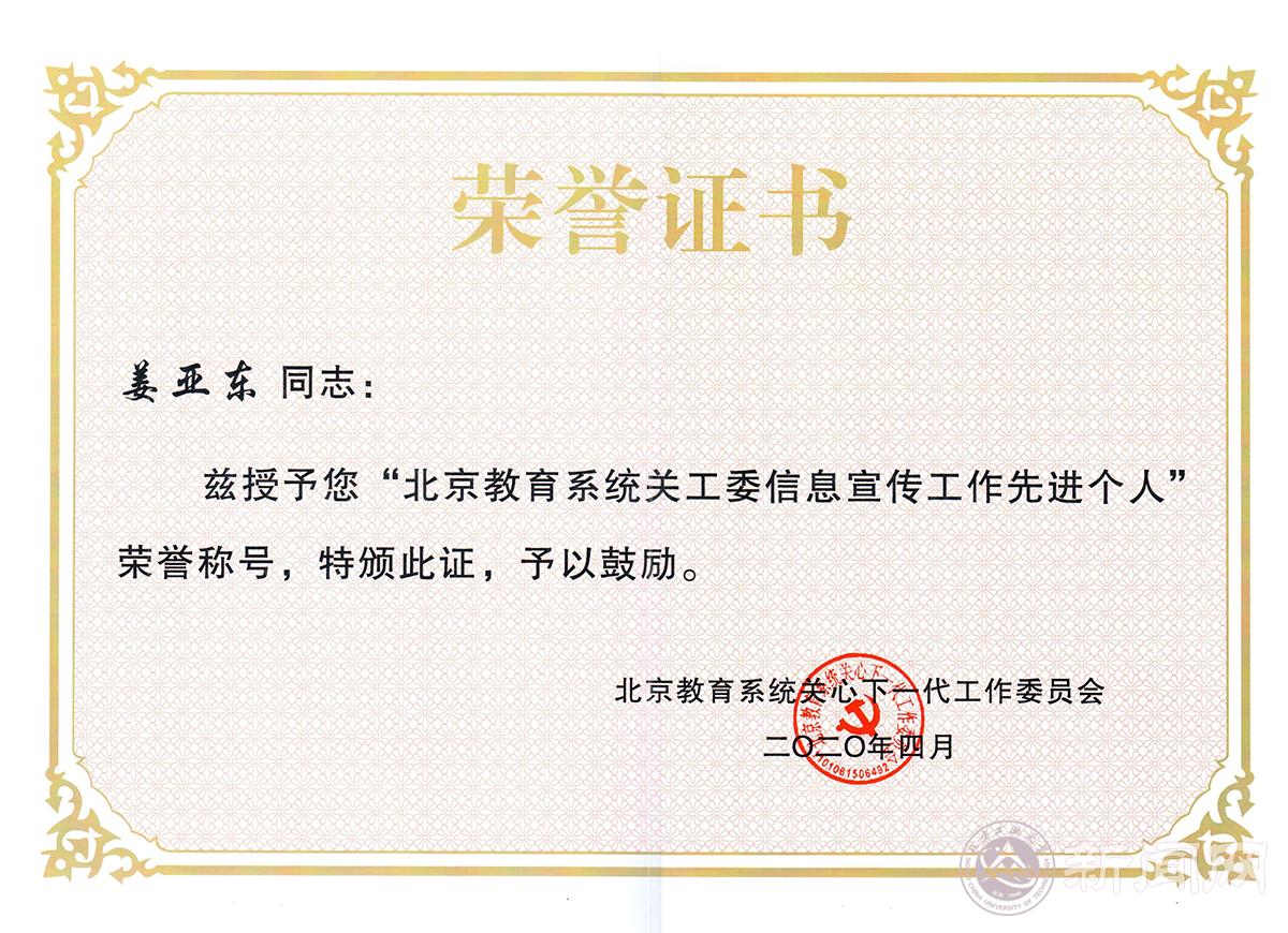 会议对2019年“读懂中国”活动、信息宣传先进单位和个人等进行了表彰。世界杯关工委荣获“北京教育系统关工委信息宣传先进单位”、2019年“读懂中国”活动优秀组织奖,三篇征文和两个微视频荣获“读懂中国”活动征文和微视频三等奖,姜亚东获评信息宣传工作先进个人。