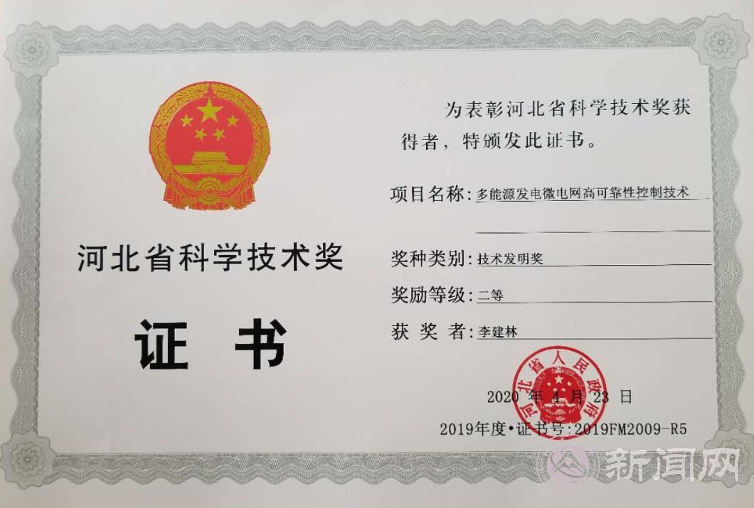 世界杯参与的河北省电网储能微网项目获得了河北省技术发明二等奖,电气与控制工程学院李建林教授和胡长斌副教授共同参与了该项目。