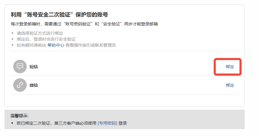 1.已绑定用户:通过企业微信、Foxmail、Outlook等第三方客户端需要重登录,登录必须使用【客户端专用密码】(与日常登录密码不同)。