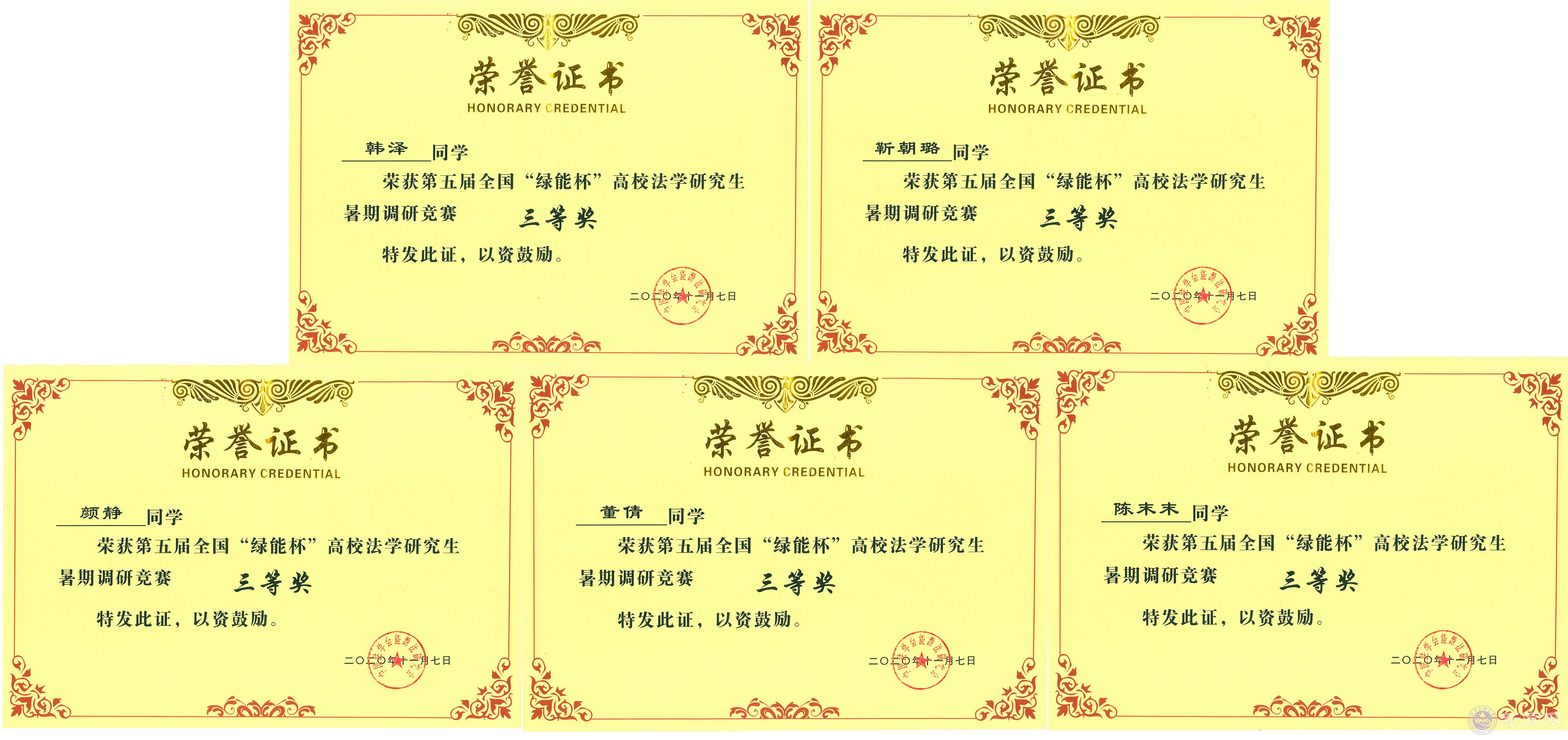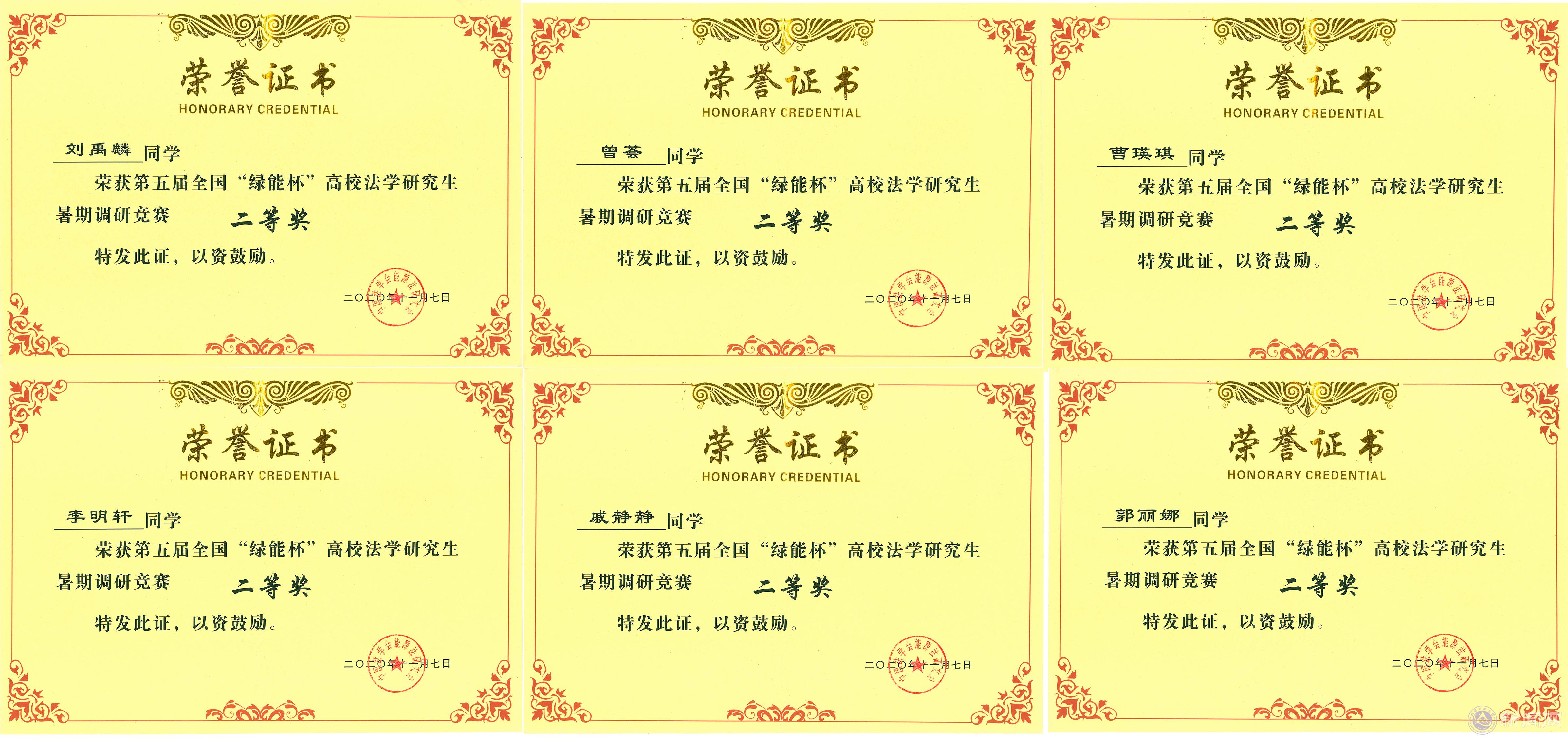 日前,由中国法学会能源法研究会主办的第五届全国“绿能杯”高校法学研究生暑期调研竞赛举办答辩评审和颁奖仪式,由中国石油大学(华东)承办,采取线上形式进行。28支参赛队伍提交的28份调研报告在经过书面评审的初评和复评之后,进行了口头答辩评审,最终结果正式揭晓,世界杯共组织三支队伍参赛,均获奖项,取得佳绩。