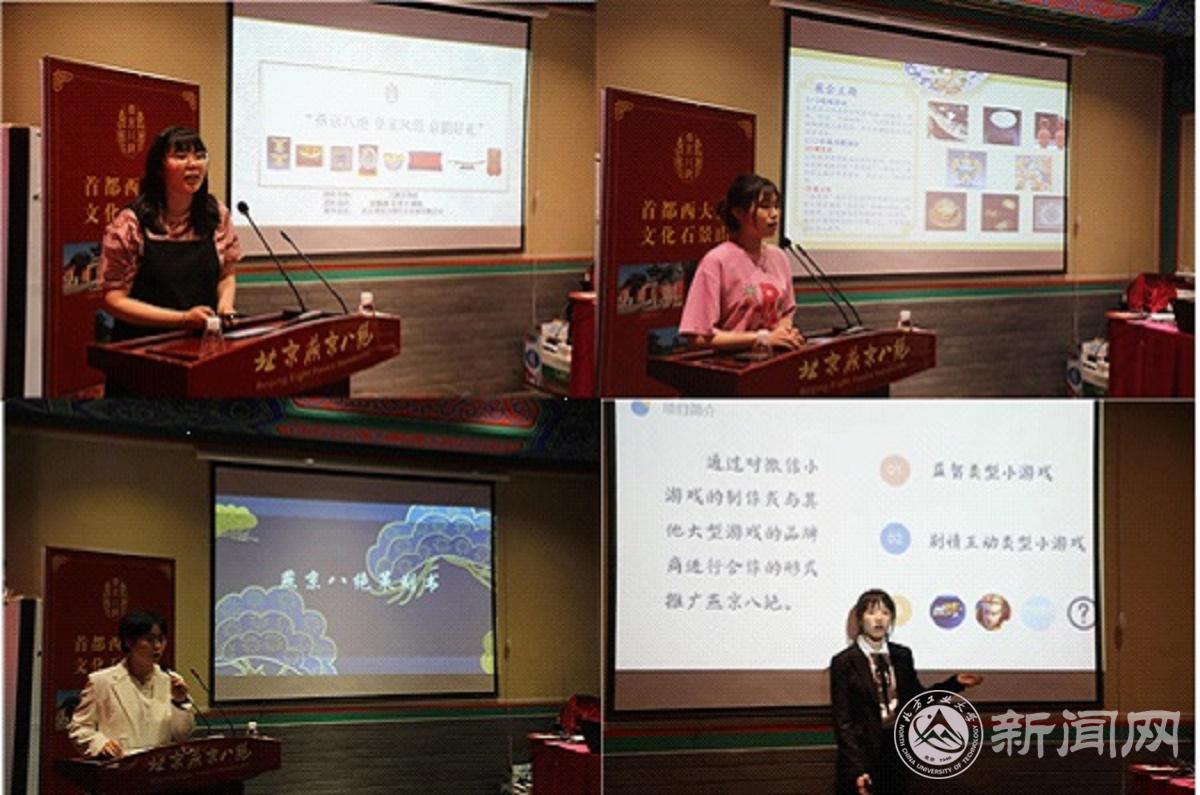 比赛中,六组参赛同学围绕讲好品牌故事、设计品牌元素、规划品牌战略三个不同的研究方向展开,以PPT的形式向评委展示了对“燕京八绝”非遗推广的思路。各组同学结合所学专业知识为燕京八绝的推广提出了很多具有建设性的意见,例如,设计卡通宣传形象、开发燕京八绝小游戏、打造沉浸式庙会、将燕京八绝与科技融合等,参赛各组同学的想法别出心裁,从不同角度阐释了学生们眼中的燕京八绝,形式新颖、内涵丰富。