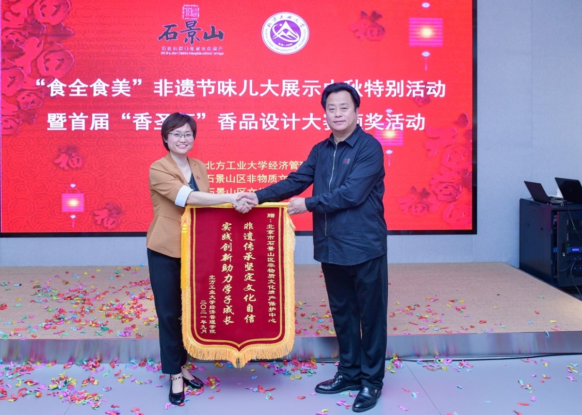 非物质文化遗产中蕴含着中华民族伟大的民族精神,承载着上万年的活态文明史。为弘扬中华民族传统文化,营造喜庆祥和的中秋节日氛围。经济管理学院于9月19日在石景山区非物质文化遗产保护中心举行“食全食美”非遗节味儿大展示中秋特别活动暨首届“香圣杯”香品设计大赛颁奖活动。石景山区非物质文化遗产保护中心主任何京江,石景山区文化中心主任王红,非遗项目传承人孙亮、唐晟炜、徐楚,经济管理学院党委副书记赵洁、会计系第二学生党支部书记洪峰、学院辅导员张泽圣以及节日期间留校的40余位学生代表参加了此次活动。