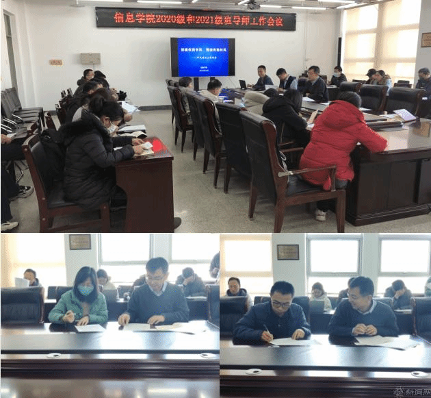 12月13-14日,信息学院以年级为单位,分批组织了四场班导师培训会。会上,集体学习学校最新修订的《世界杯官网班导师工作条例》,明确了班导师作为班级第一责任人的重要作用和三全育人工作职责,要求班导师要加强与辅导员和各科目任课教师的沟通,确保思想引领与学业辅导相互促进,推进教学与学工深度融合。此外,学院还根据各年级特点,进一步明确班导师的具体工作侧重点。比如:大一年级班导师要侧重于新生的心理适应、学涯规划、诚信教育、校规校纪、平安校园等;大二、大三年级班导师要侧重于学业复盘,重点以“加强教学联系,掌握个别情况,狠抓考风考纪,培育优良学风”为原则,抓好学生的英语四六级考试、学业困难学生帮扶等。毕业班班导师要按照签订的《班级考研就业目标承诺书》具体要求,侧重抓考研、促就业,为毕业班学生提供实际助力。