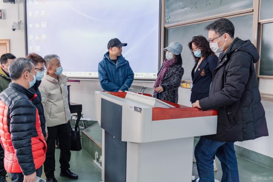 在李敏副主任、网信中心教育技术部负责人王岸飞的引领下,一行人先后前往广学楼、瀚学楼和励学楼教室现场观摩、考察。李敏向来访领导介绍了世界杯最近几年的多媒体教室升级改造项目的相关情况及目前的现状,王岸飞介绍了教室多媒体的系统构成、功能和特点,并进行了演示。