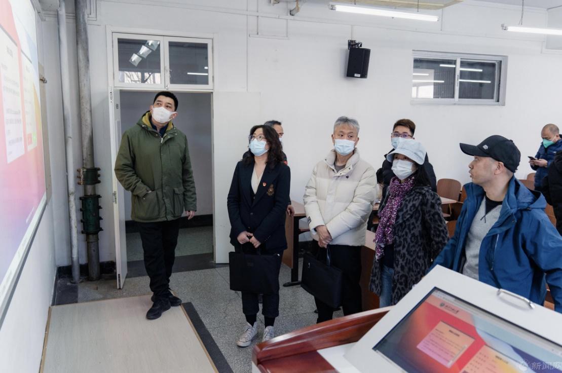参观完教室,一行人回到教育技术部中控室,王岸飞演示了课程资源直播、录播平台,然后双方在网信中心会议室就相关问题进行深入交流。
