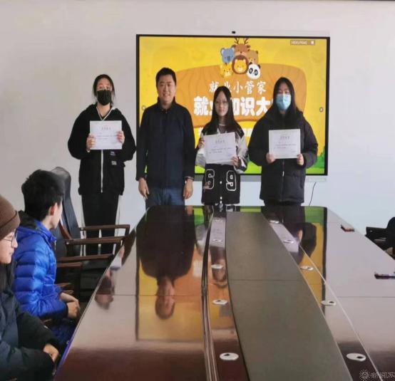 作为学院2023年“强技助航”就业系列活动和就业政策宣传月活动的重要内容,本次大赛采用现场竟达的方式,面向班级“就业小管家”开展就业知识竞赛比拼,设有必答题、抢答题、风险题三轮比赛,借此提升他们就业服务能力。经过紧张激烈的角逐,最终产生一、二、三等奖。学院副书记陈卫老师和就业辅导员李伟老师为获奖班级“就业小管家”发放奖状,为所有“就业小管家”发放本学期上岗聘书。