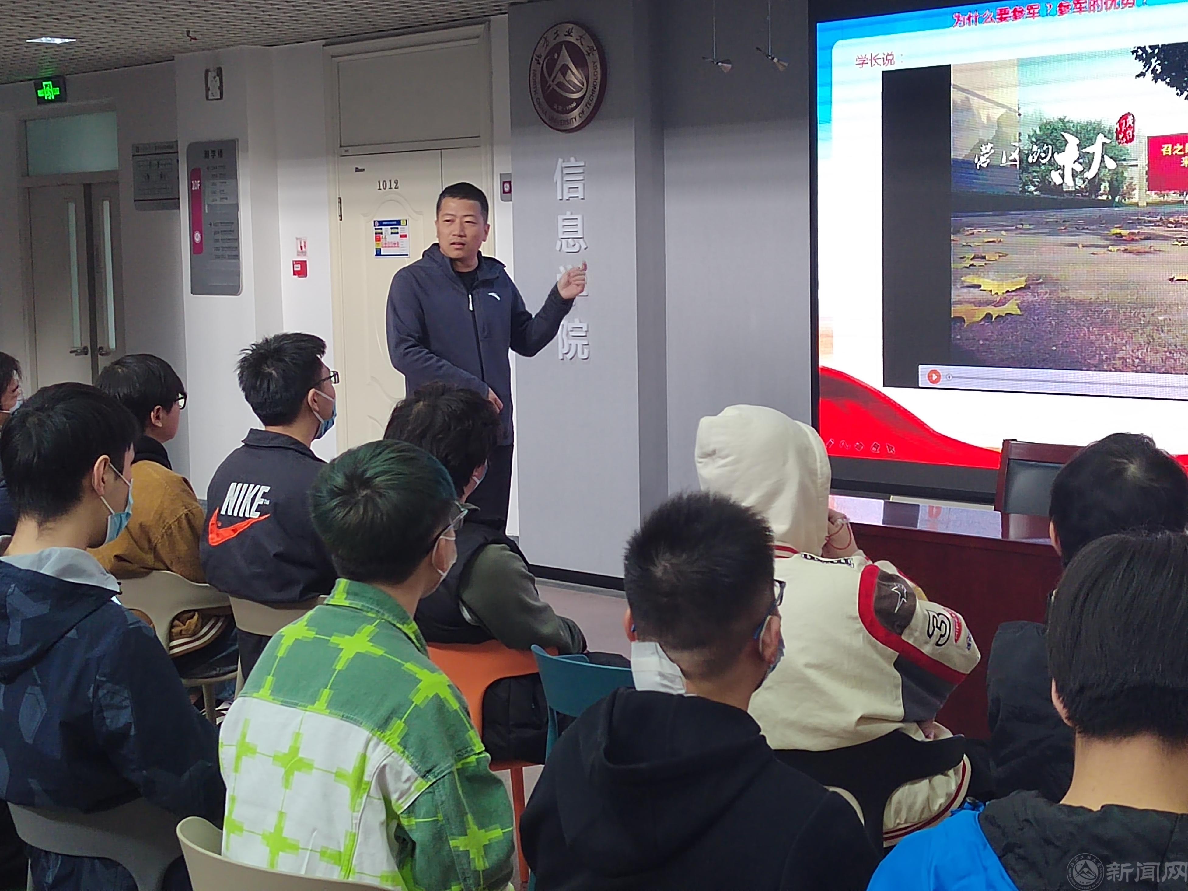 武装部苏宁老师详细介绍了近几年世界杯毕业生参军入伍的情况,解读了大学毕业生参军入伍的各项政策、分析了毕业生入伍的优势和发展方向,详细介绍了退伍后的安置情况,并根据往年征兵经验计算了入伍后的经济账。苏宁老师还鼓励同学们树立正确的入伍观念,提前准备今年秋季征兵。
