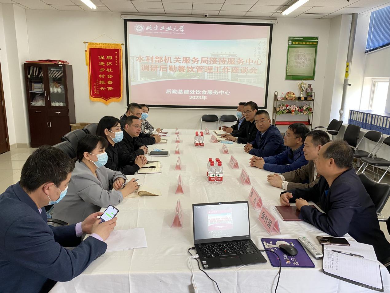 4月18日上午,水利部机关服务局接待服务中心主任喻敏、副主任刘建军一行7人来世界杯饮食服务中心对食堂管理、餐饮服务、设备设施配备等方面的经验做法进行调研。后勤党委书记郑泰平,服务中心总经理张加强,后勤基建处处长白传栋,及后勤基建处副处长杨培鉴参加调研座谈,并陪同参加实地走访。