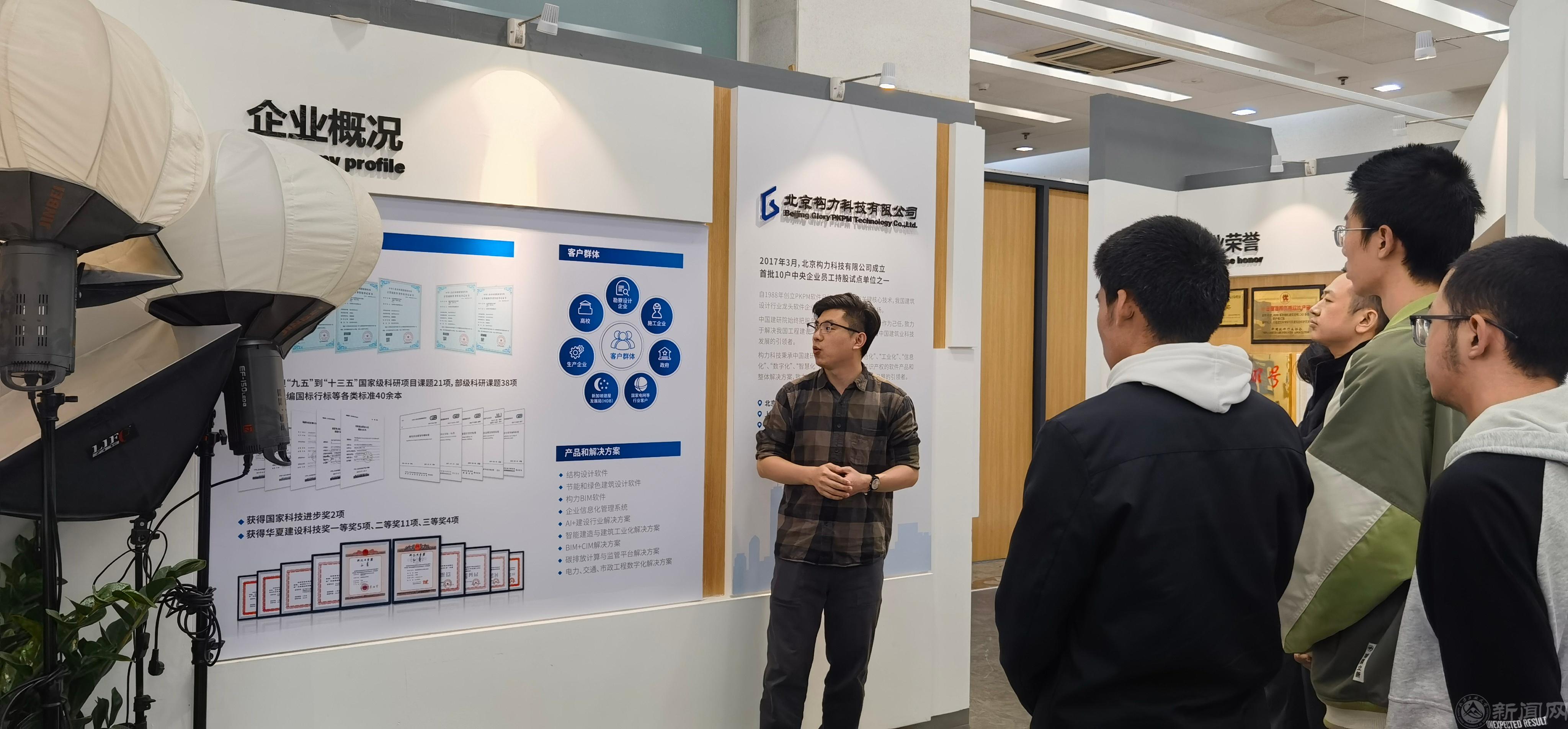 北京构力科技有限公司技术支持部技术主管路欢向师生们介绍了中国建筑科学研究院有限公司和北京构力科技有限公司的基本情况,PKPM品牌发展历程及技术发展路径,以及基于BIM技术在土木工程行业智能建造新专业方向取得的优秀示范成果,并带领师生参观了构力科技PKPM展示中心。