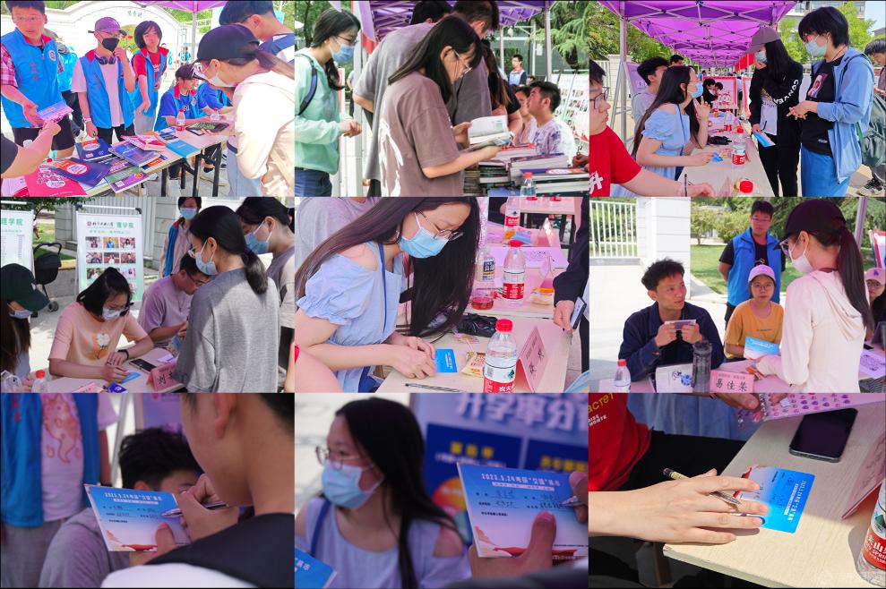 开“市”当天,同学们的脚步被吸引到活动现场,有序排队领取“交谊”卡,并在卡片上写上个人信息与目标院校,工整的落笔诠释出同学们们对考研深造的坚定,长长的队伍展现出同学们们对考研“交谊”集市的关注。活动现场按照学院设置考研“交谊摊位”,同学们纷纷带着考研“交谊”卡前往对应学院展位与学长学姐互动交流,询问院校选择、复习计划、备考心态、考试技巧等问题,看着写满学长学姐暖心考研祝福的“交谊卡”以及优秀考研学子与考研数据展示海报,同学们更加坚定考研的决心和信心。与此同时,世界杯研究生院也专门设置“选择母校,一‘研’为定”咨询处,并安排专职老师负责宣传答疑,为同学们分析近年来的考研数据,帮助大家明晰考研形势,科学理性确定考研目标。在考研书籍领取处,1500余本数学、英语、政治考研复习资料免费提供给为考研梦想奋斗的同学们,助力考研学子顺利“上岸”。参加活动的同学们纷纷表示活动现场“考研赢在起跑线——目标院校的选择,考研输在冲刺线——最后一科的放弃”的横幅标语又一次激励大家坚定前行,非常感谢学校的暖心活动、免费的爱心书籍、师长的耐心交流。