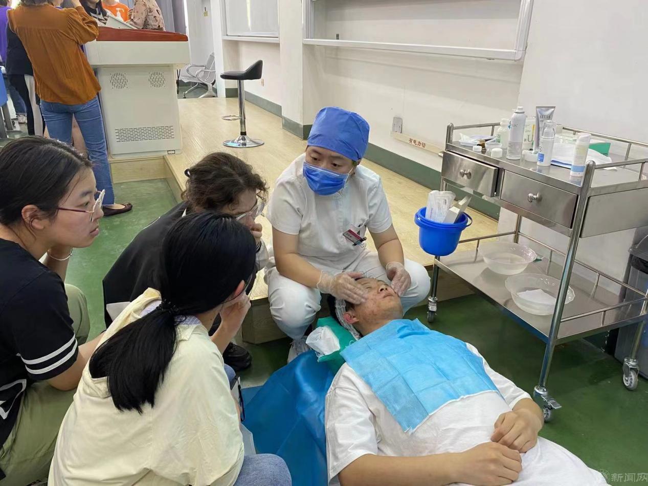 北京大学首钢医院皮肤科王海英主任为同学们讲述了正确护肤的重要性,帮助学生了解健康护肤的一些基本常识和方法。皮肤科主治医师张欣用浅学易懂的方式,为学生们讲述关于痤疮肌肤的护理以及痤疮后的痘印修复、提亮肤色,以及瘢痕治疗的科学方法。皮肤科孟韩梅护士为现场邀请的两名学生志愿者开展护肤操作,体验先进的复合酸换肤术的效果。