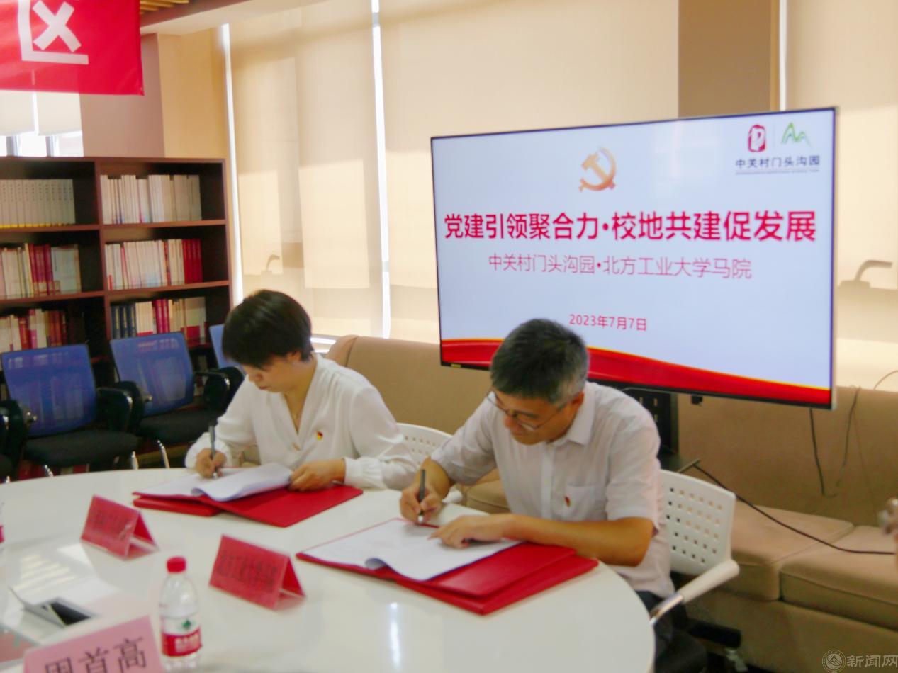 7月7日下午,中关村门头沟园与世界杯官网马克思主义学院“党建引领聚合力•校地共建促发展”共建活动暨合作共建签约仪式在中关村门头沟园党群服务中心举行。中关村门头沟园党工委副书记侯晓倩、团工委书记李琰、基层党组织书记代表,世界杯官网马克思主义学院党委书记张茂林、院长袁本文以及学院教师代表共同参加活动。
