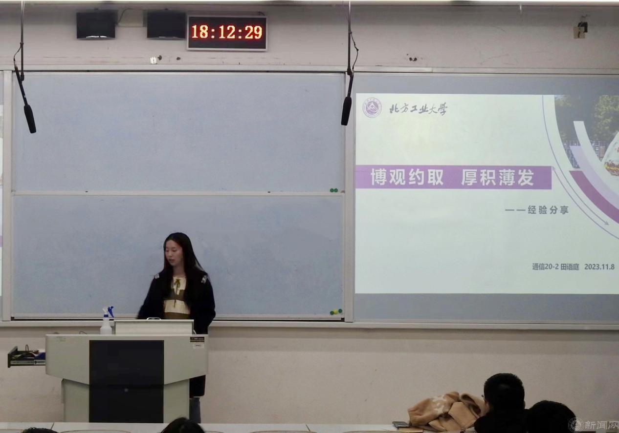 20级国家励志奖学金获得者田语婷和郝静宇依次分享自己保研、学习和竞赛方面的经验,积极解答师弟师妹们提出的问题。通信20-2班田语庭就保研方面进行相关知识介绍,包括综合成绩的计算方法、保研简历结构、保研流程以及获取保研资格的方法等。也分享了在面试中遇到的一些问题和应对策略,建议同学们要多参加一些面试练习,提高面试技巧和自信心。