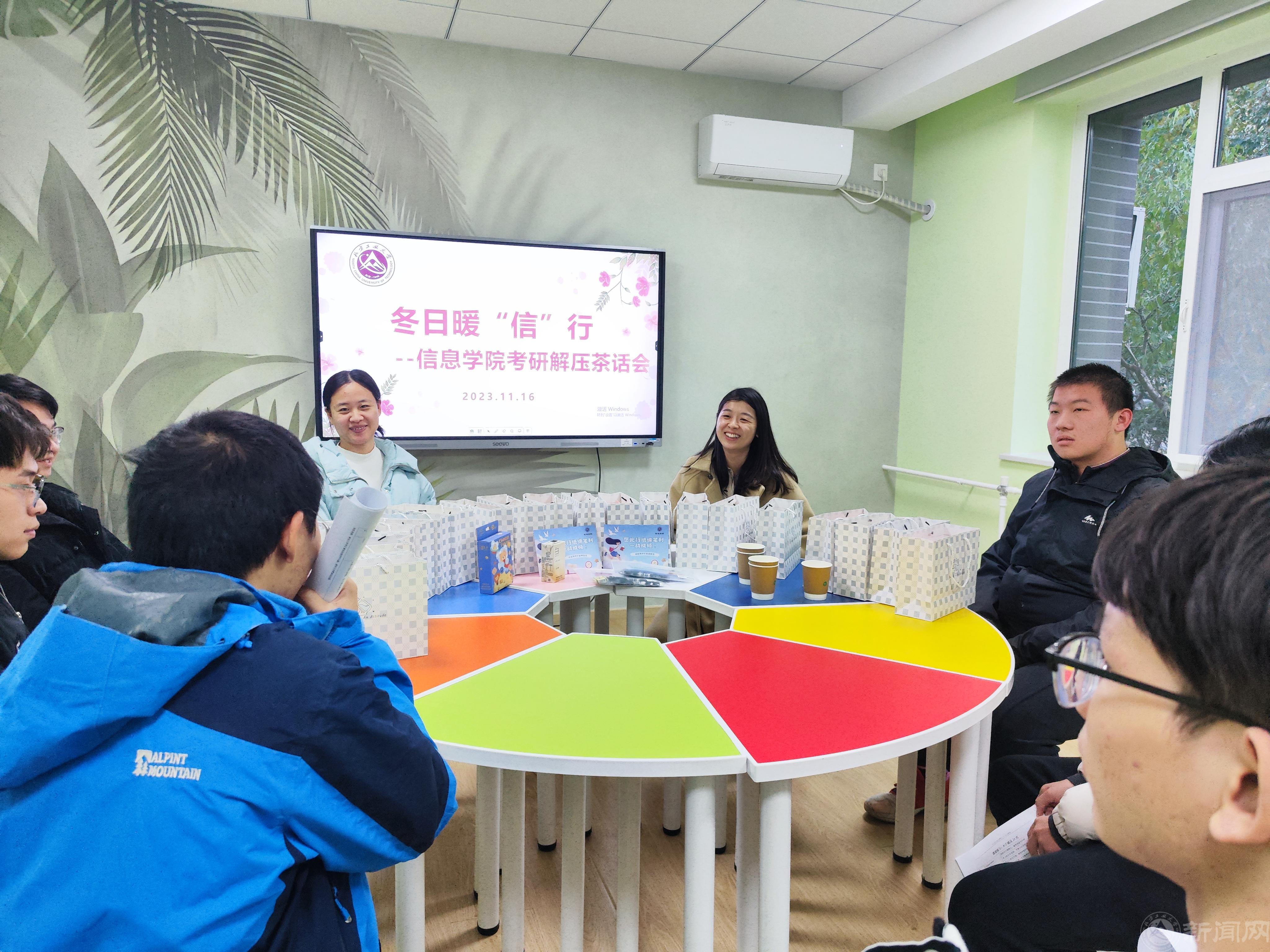 “人生漫漫而修远,迷茫时有,疲惫时有。”为缓解同学们的考研压力,明确奋斗目标,交流学习心得,帮助同学们以积极平稳的心态迎接2024年全国硕士研究生招生考试。11月16日,信息学院就业辅导员魏静、辅导员陈煦婷邀请2024届考研学生代表共聚心理咨询中心113房间,展开了一场共忆与黄昏邂逅的考研解压“茶话会”。