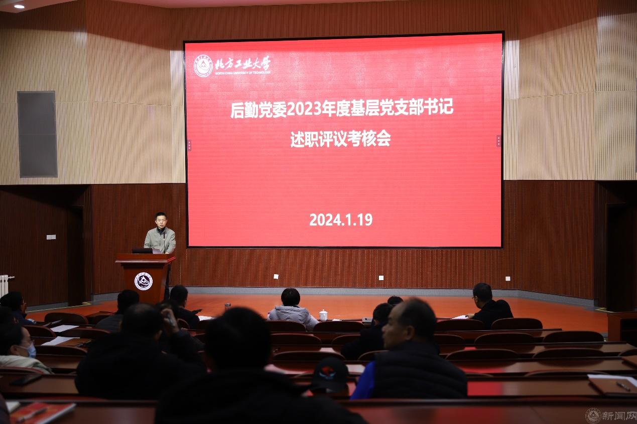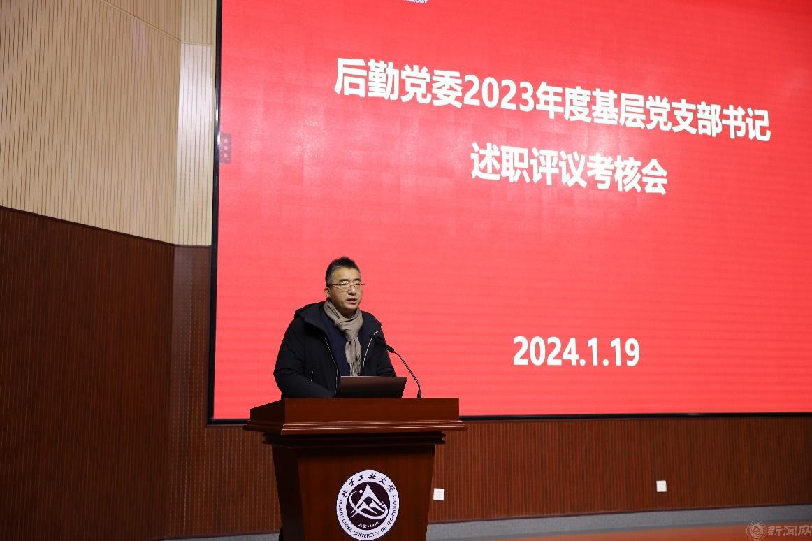 1月19日上午,后勤党委在文化会堂召开2023年度基层党支部书记述职评议考核会。学校党委组织部副部长赵洁到会指导,后勤党委班子成员、处级领导干部、各党支部书记、支委委员及副经理以上干部30余人参加会议。会议由后勤党委副书记、服务中心总经理张加强主持。