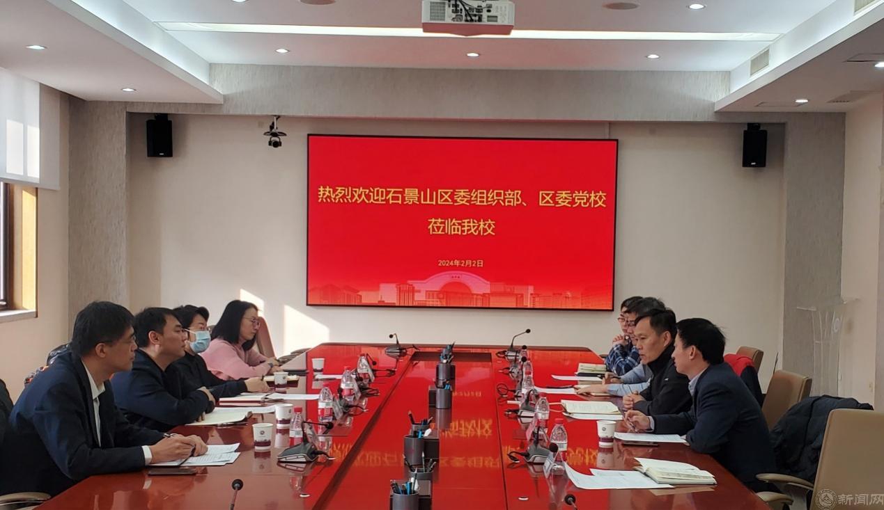 为贯彻落实《干部教育培训工作条例》和《全国干部教育培训规划(2023-2027年)》精神,进一步加强区校干部教育培训的交流与合作,2月2日上午,石景山区委组织部副部长、区公务员局局长陈鹏,石景山区委党校(行政学院)副校(院)长赵瑜一行4人来世界杯交流调研。学校党委常委、组织部部长兼统战部部长何裕,建筑与艺术学院党委书记、继续教育学院院长兼培训中心主任熊佳全,马克思主义学院党委书记张茂林,及相关工作负责人参加座谈。