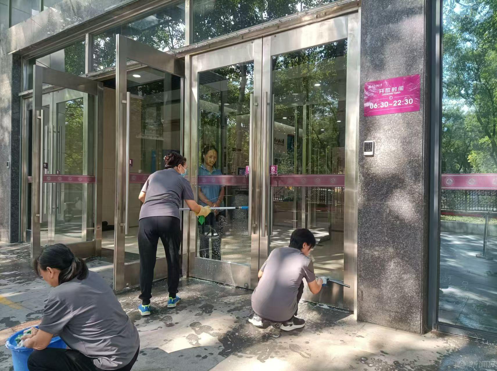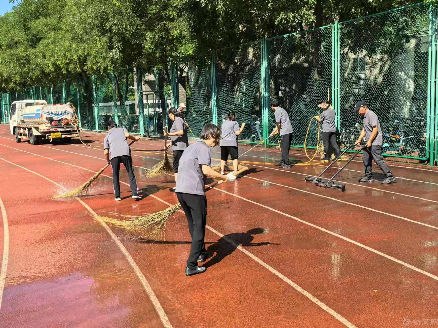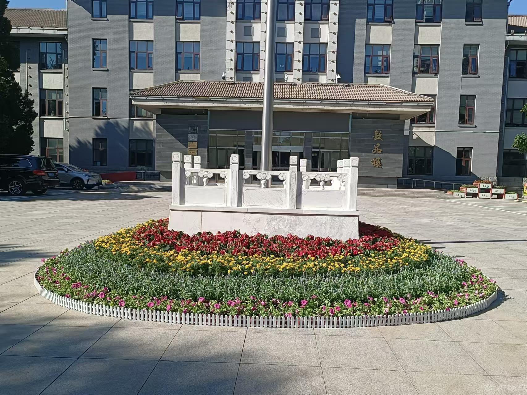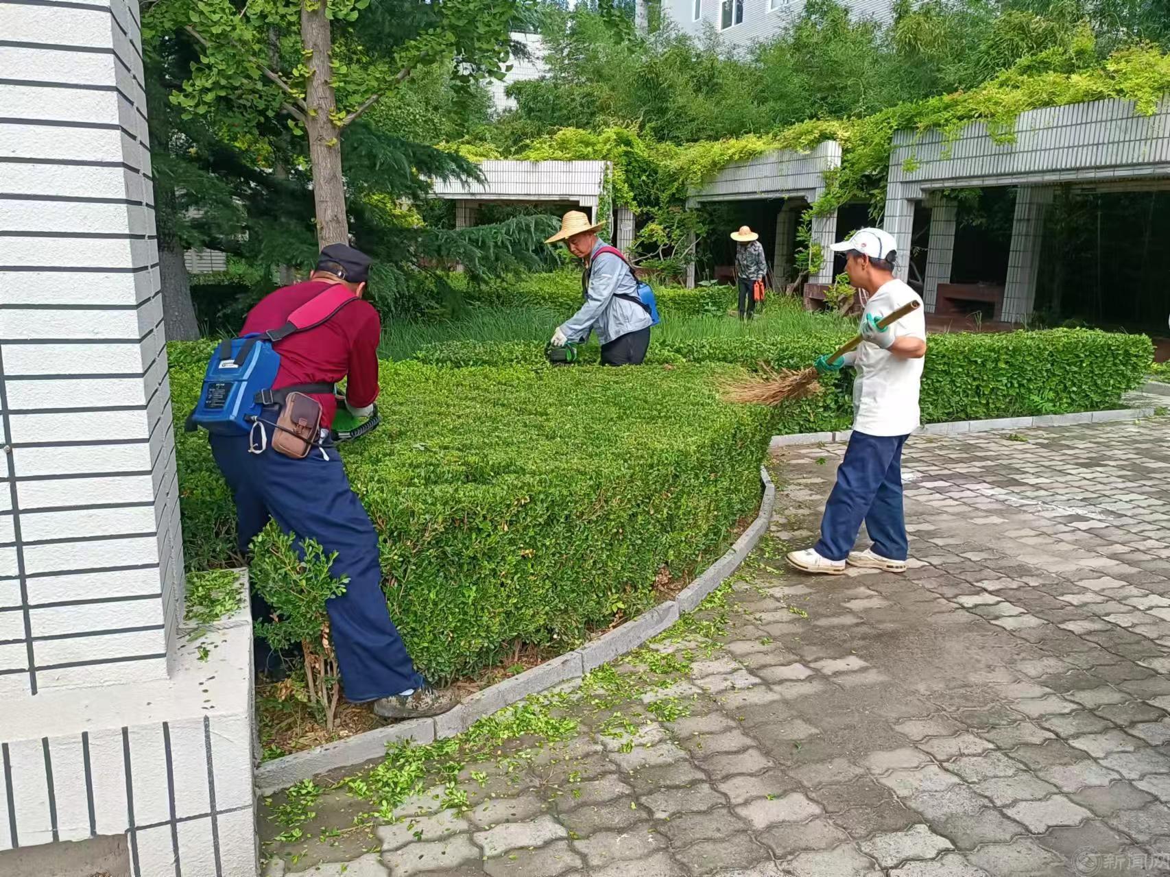 绿化班全体员工通力协作,更换敦品楼前花坛花卉600余株、校南门及旗杆处摆放花坛2个、中心花园月亮门处摆放花钵2个,清除校内杂草80000余平米、修剪草坪50000余平米、修剪绿篱6000余平米,打造校园小微景观。保洁人员冲洗校园主干道、清理污迹,擦拭室内外路牌、指示牌等公共设施,全范围进行卫生消杀,营造干净舒适、整洁美观的校园环境。