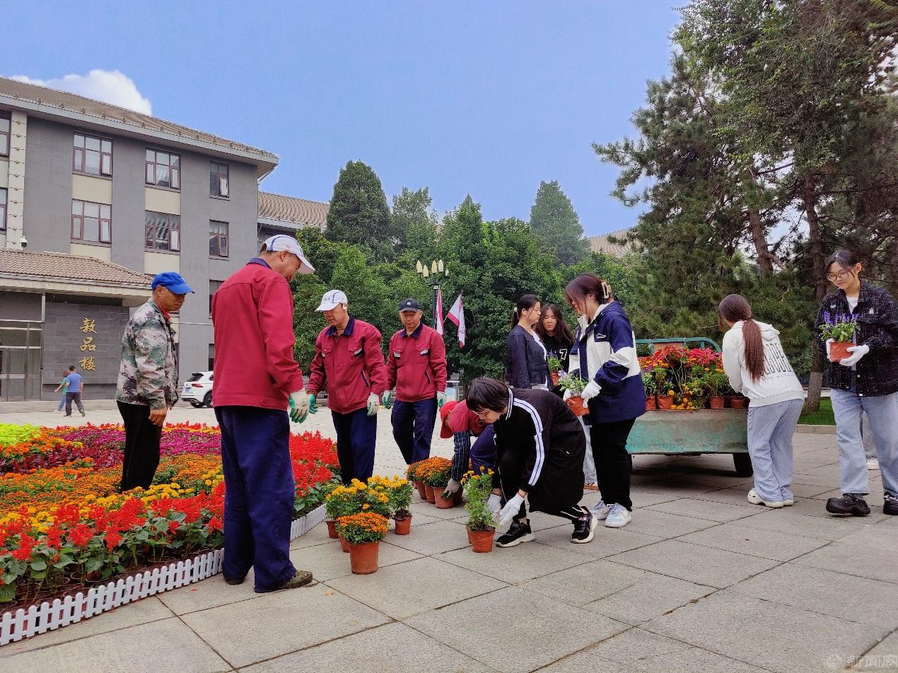 此次国庆花坛的设计与摆放不仅为校园增添了亮丽的风景,也成为了学生们参与公益劳动、锻炼实践能力的重要平台。花坛前,师生们纷纷驻足观赏、拍照留念,共同祝愿伟大的祖国繁荣昌盛、国泰民安。