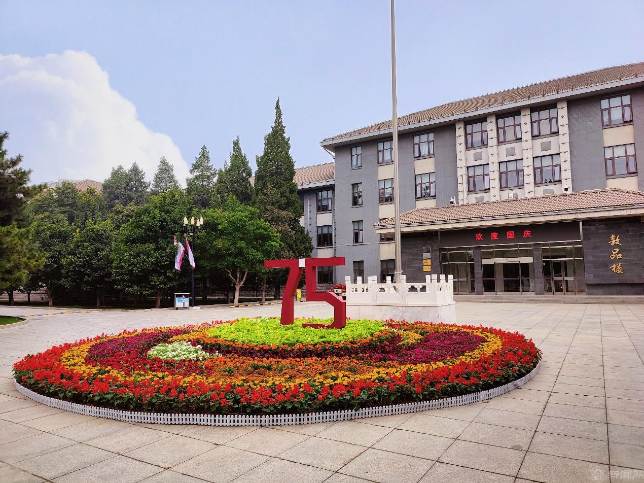 9月27日上午,为迎接国庆75周年而铺设的校园主题花坛搭建完毕,为学校增添了一抹喜庆的节日氛围。此次花坛选用了同学的设计作品,由参加公益劳动的同学协助铺设完成,实现了校园景观打造和爱国教育的有机结合。
